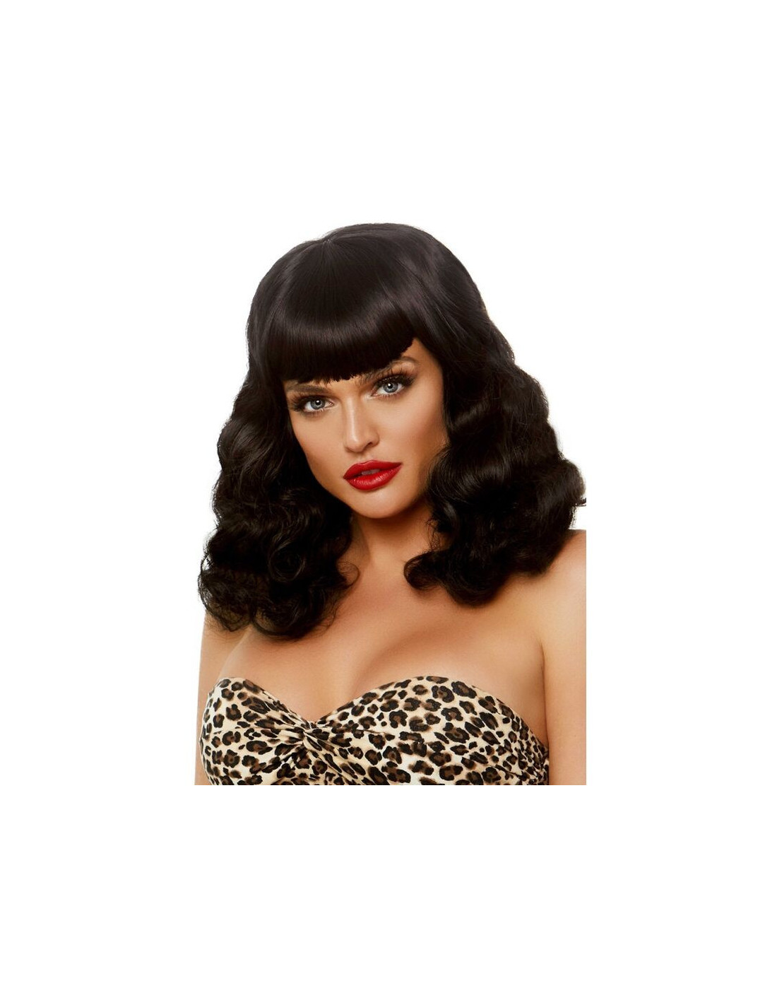 LEG AVENUE - CURLY RETRO WIG WITH BANGS LUMINISCENT BLACK