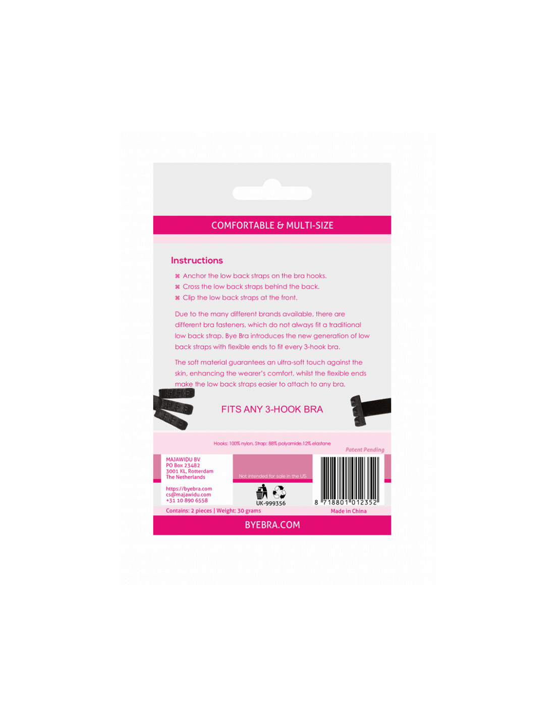 Bye Bra proposes the new generation of open back straps that adapt to all 2 or 3 hook bras.