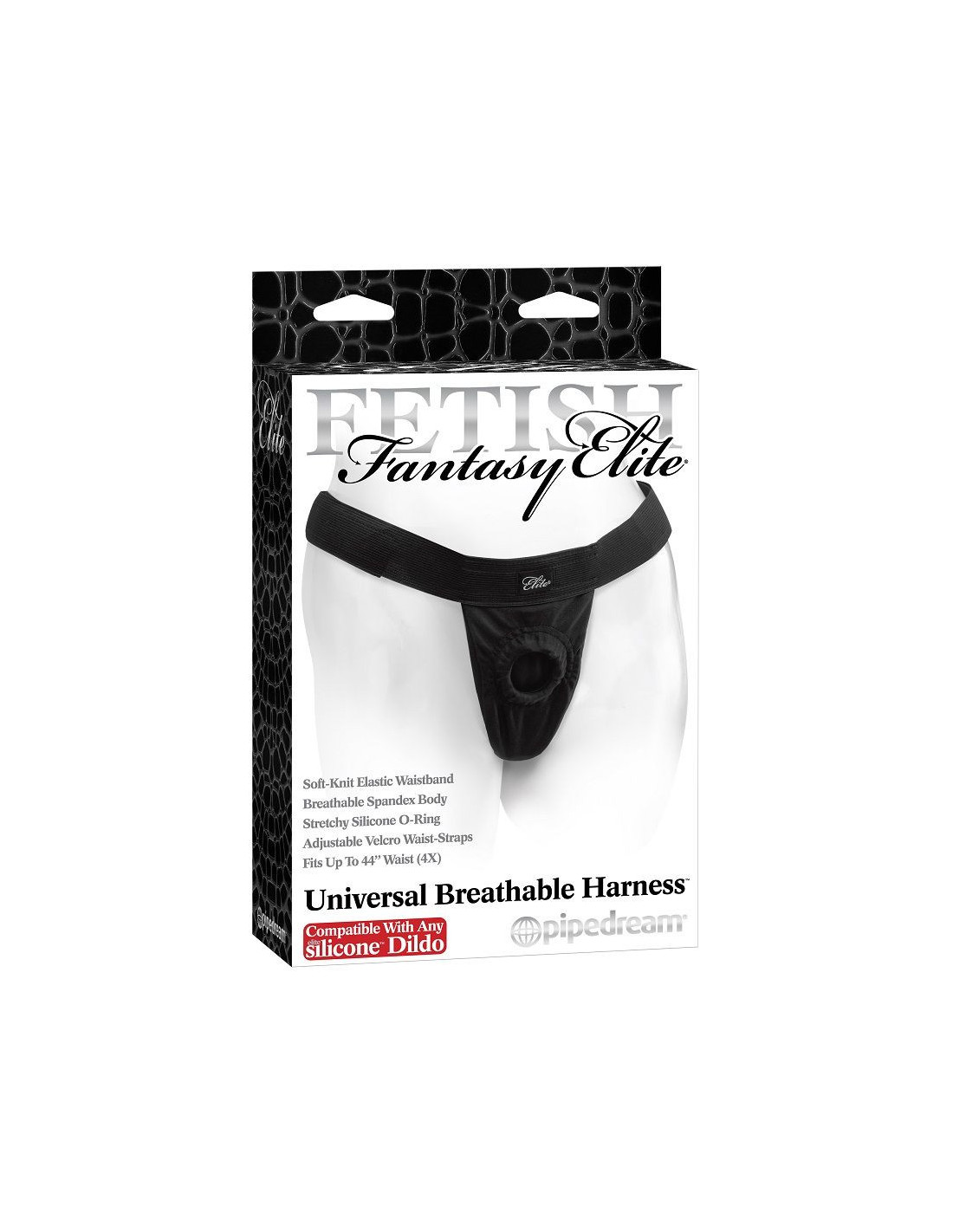 FETISH FANTASY ELITEFinally, a universal harness designed with comfort and flexibility in mind! The Universal Breathable Harness is made from a super-soft combo of spandex and lycra and features a comfortable elastic waistband and breathable harness body. You won't even know you're wearing a strap-on harness, thanks to the lightweight material and easy-breathing fabric. The ultra-comfy harness combines form and function, making it the only strap-on harness you'll ever need.