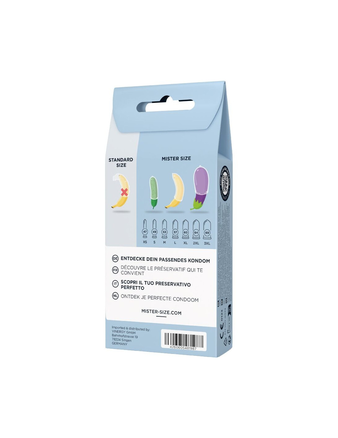 - 3 MISTER SIZE condoms in sizes 53, 57, and 60 mm