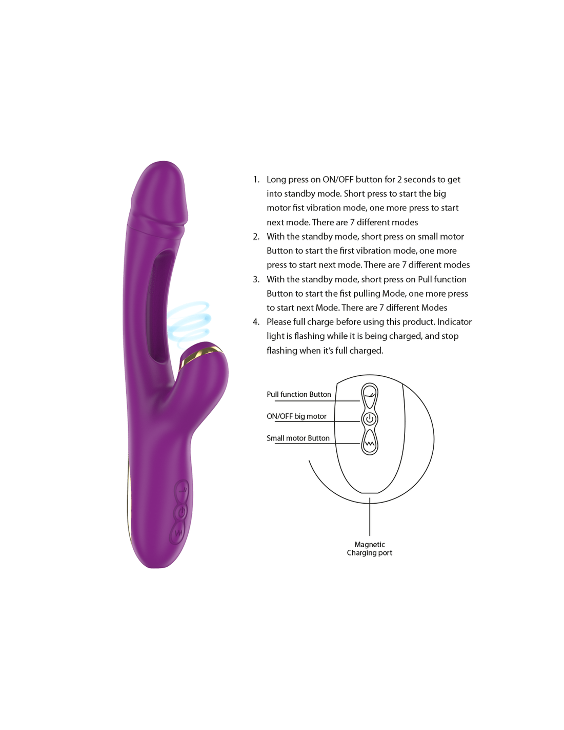 - Vibration Modes: Offers 7 vibration modes to customize your experience to your liking.