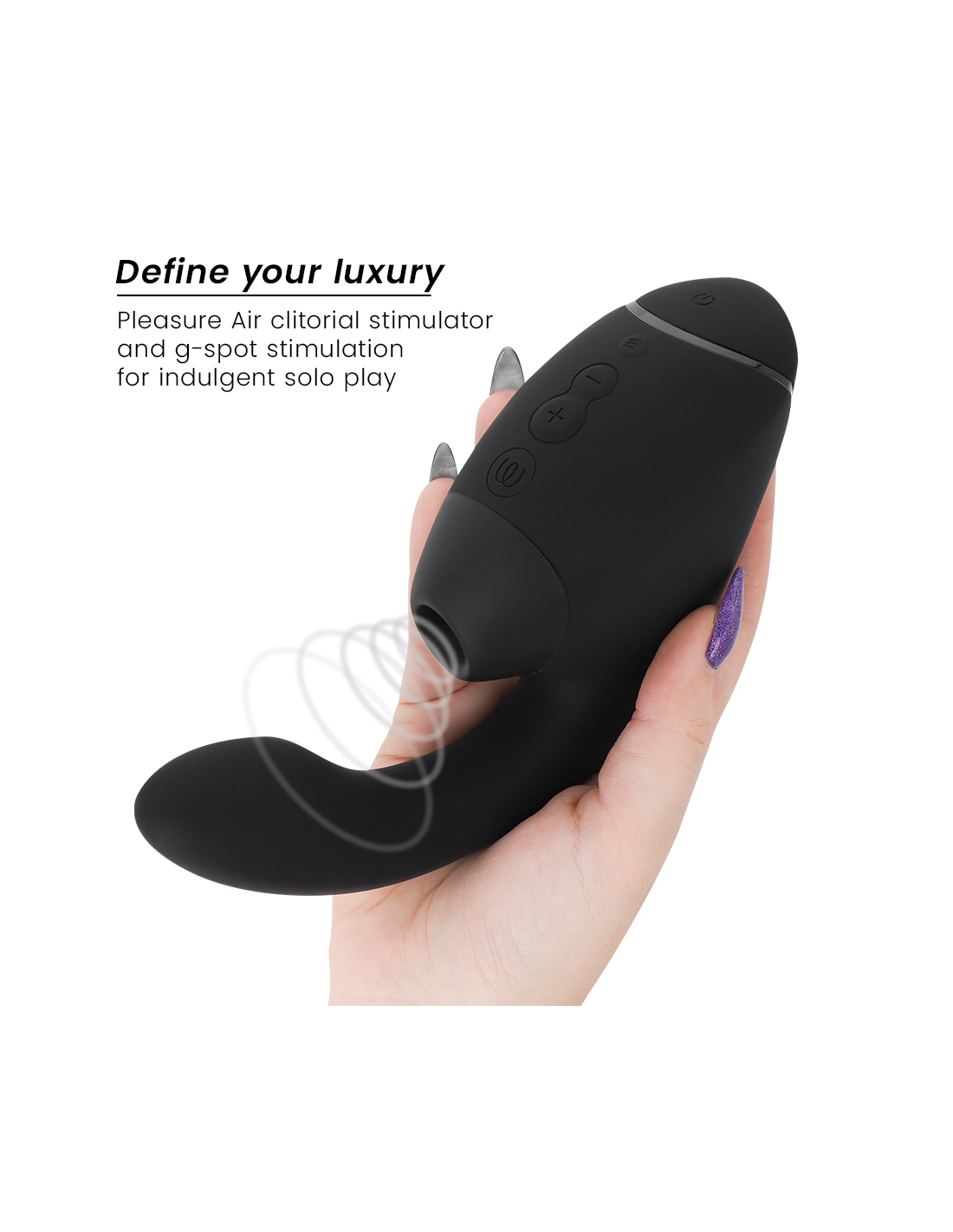 WOMANIZERDual clitoral and G-spot stimulator with 3D Pleasure Air. An advanced dual stimulator that combines Womanizer’s revolutionary 3D Pleasure Air with We-Vibe’s deep, rumbly G-spot vibrations. This powerful combination is designed to create next-level blended orgasms that feel more natural, intense, and personal than ever before.