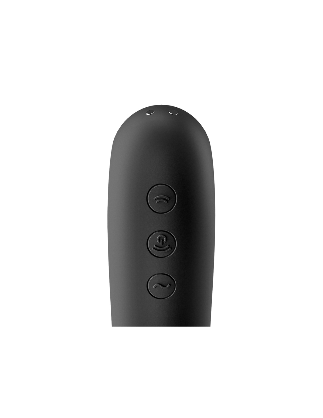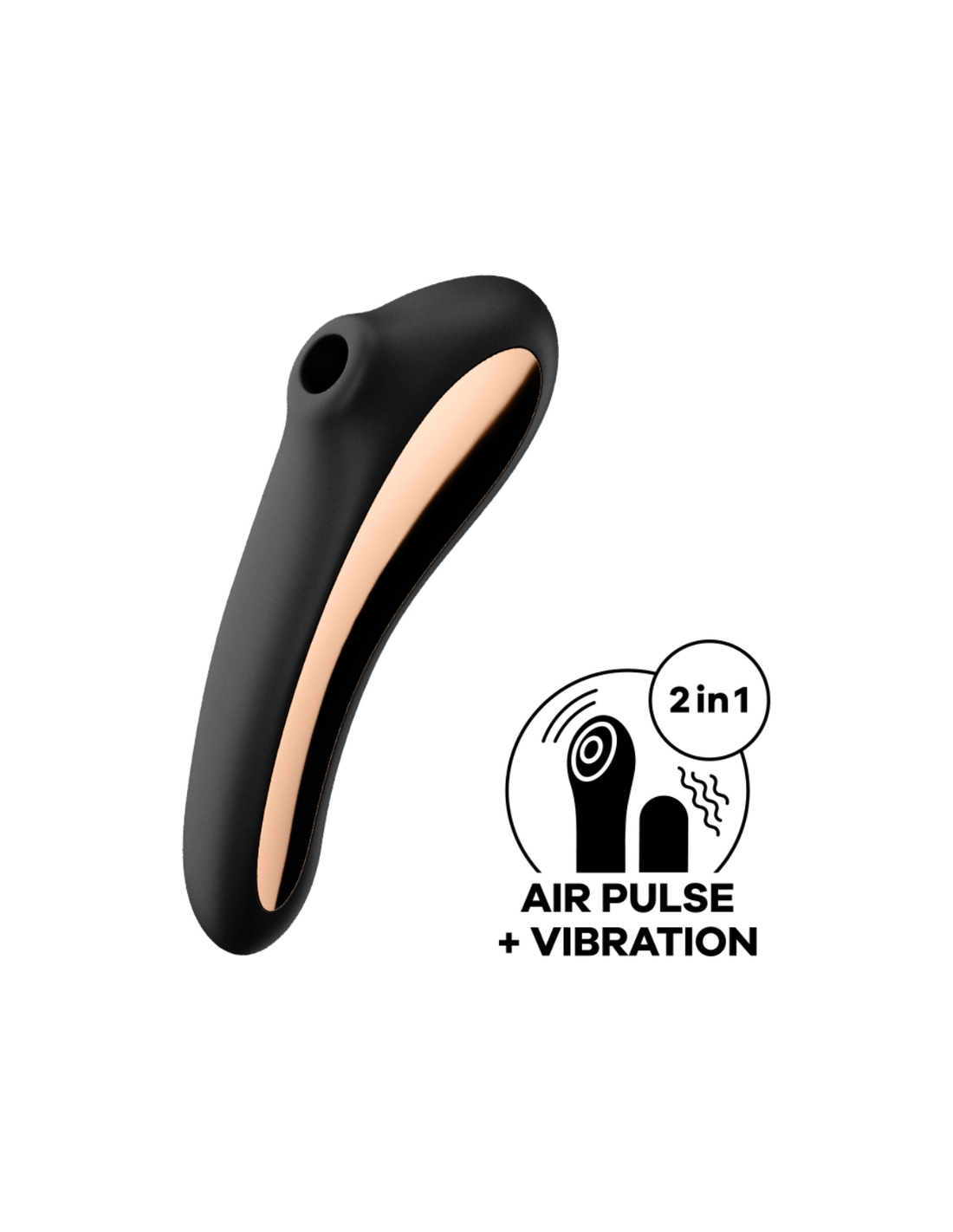 The Satisfyer Dual Kiss can do so much: The air-pulse vibrator made of body-friendly silicone can also be used as a G-spot vibrator to satisfy all your desires. The round application head can stimulate you clitorally with sensual, pulsating pressure waves, or you can enjoy a stimulating G-spot massage with the slightly curved, vibrating shaft. It’s also a real eye-catcher with its sophisticated look and elegant metal details!