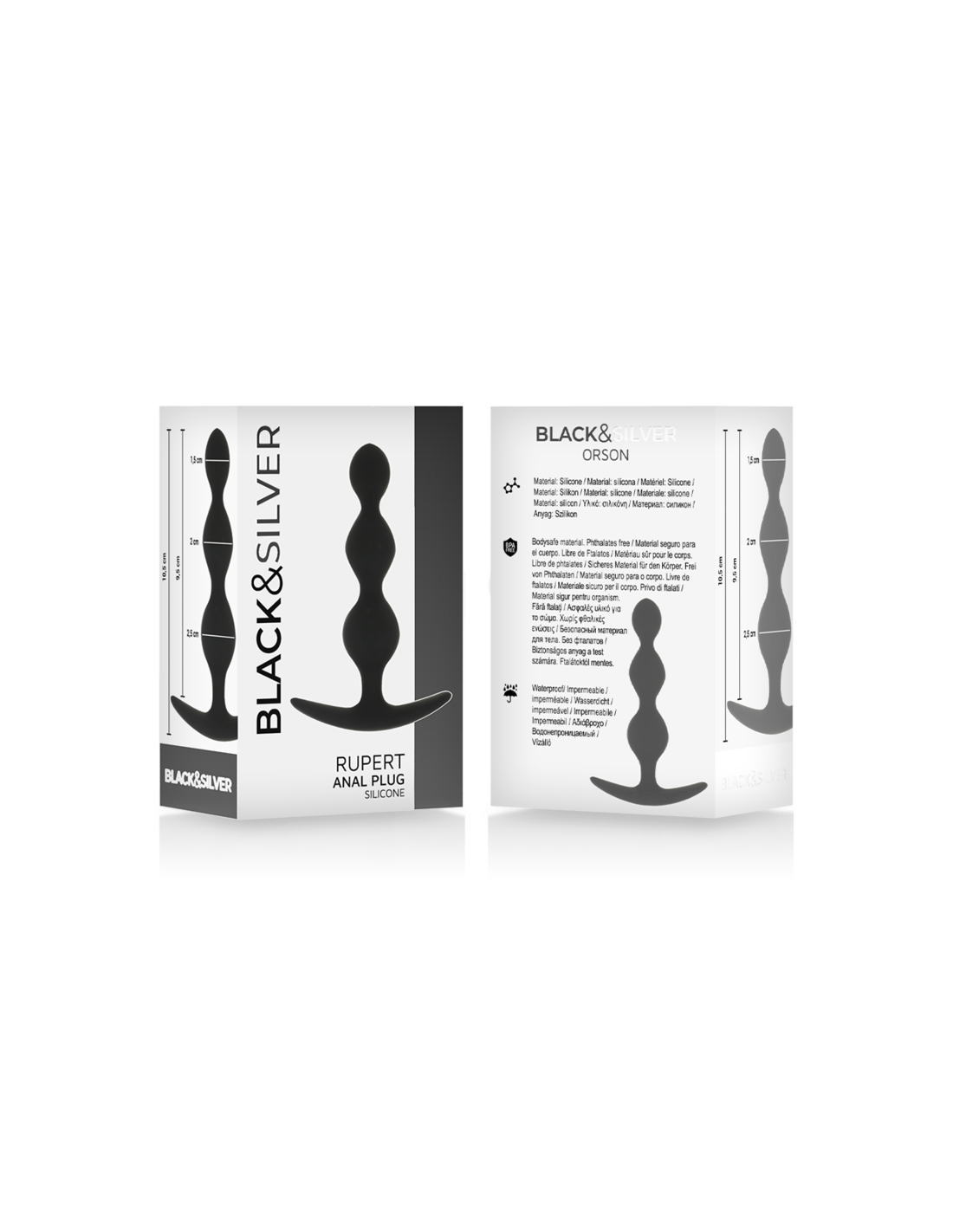 Black&Silver™ Rupert™ perfect for sensual backdoor games: The anal beads come in a set of varied structure and a soft surface made of silicone. With 5 elements, the Black&Silver™ Rupert™ are the ideal companion for anal training.