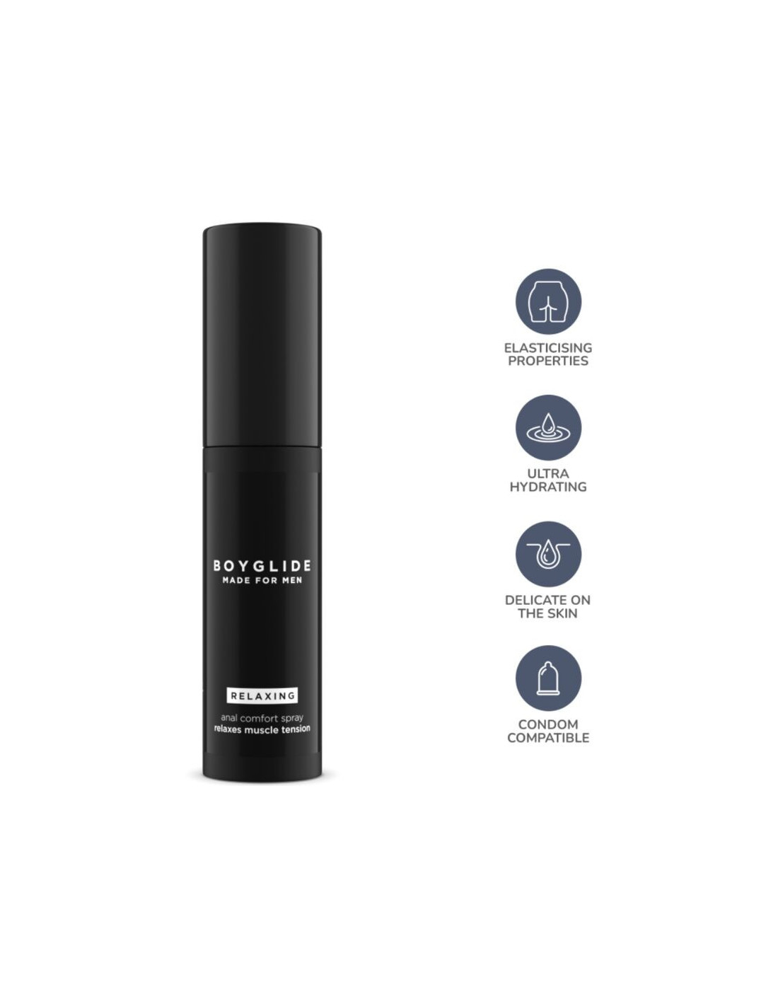 Boyglide anal relaxing spray is a lotion with super moisturizing and elasticizing properties, it relaxes the muscular tension of the intimate part, attenuates its contraction and thus guarantees maximum pleasure.