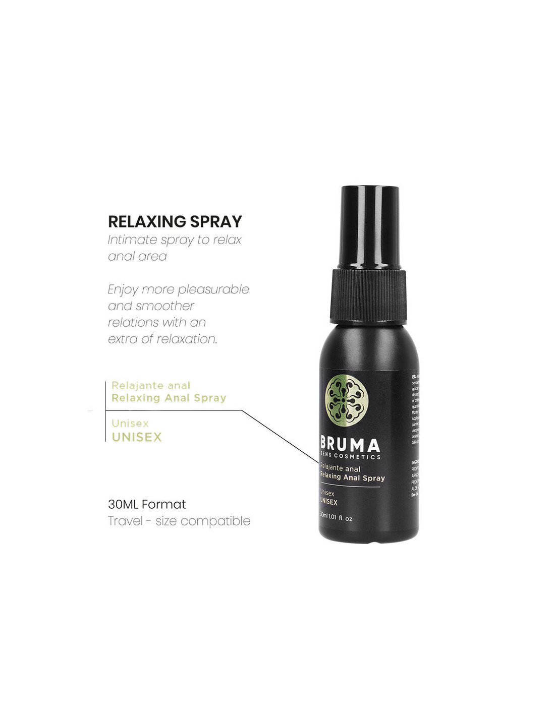 - Relaxing anal spray: Formulated to relax the muscles in the anal area, this spray facilitates comfort and reduces tension, providing a more pleasant and discomfort-free experience. Perfect for those looking to improve their comfort during anal intercourse, the BRUMA spray is ideal for softening and preparing the area, ensuring a more pleasant experience.