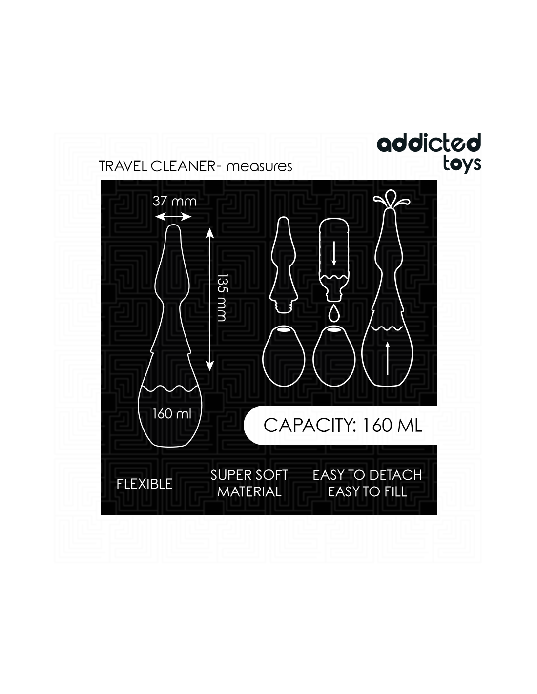 The Addicted Toys Model 1 Travel Cleaner is a practical and essential accessory for those who want to keep their sex toys in optimal hygienic condition. Ideal for use when you are on the go. Whether you're on the go or away from home, this cleaner makes for a quick, safe and efficient clean, ensuring you can enjoy your toys without worry.