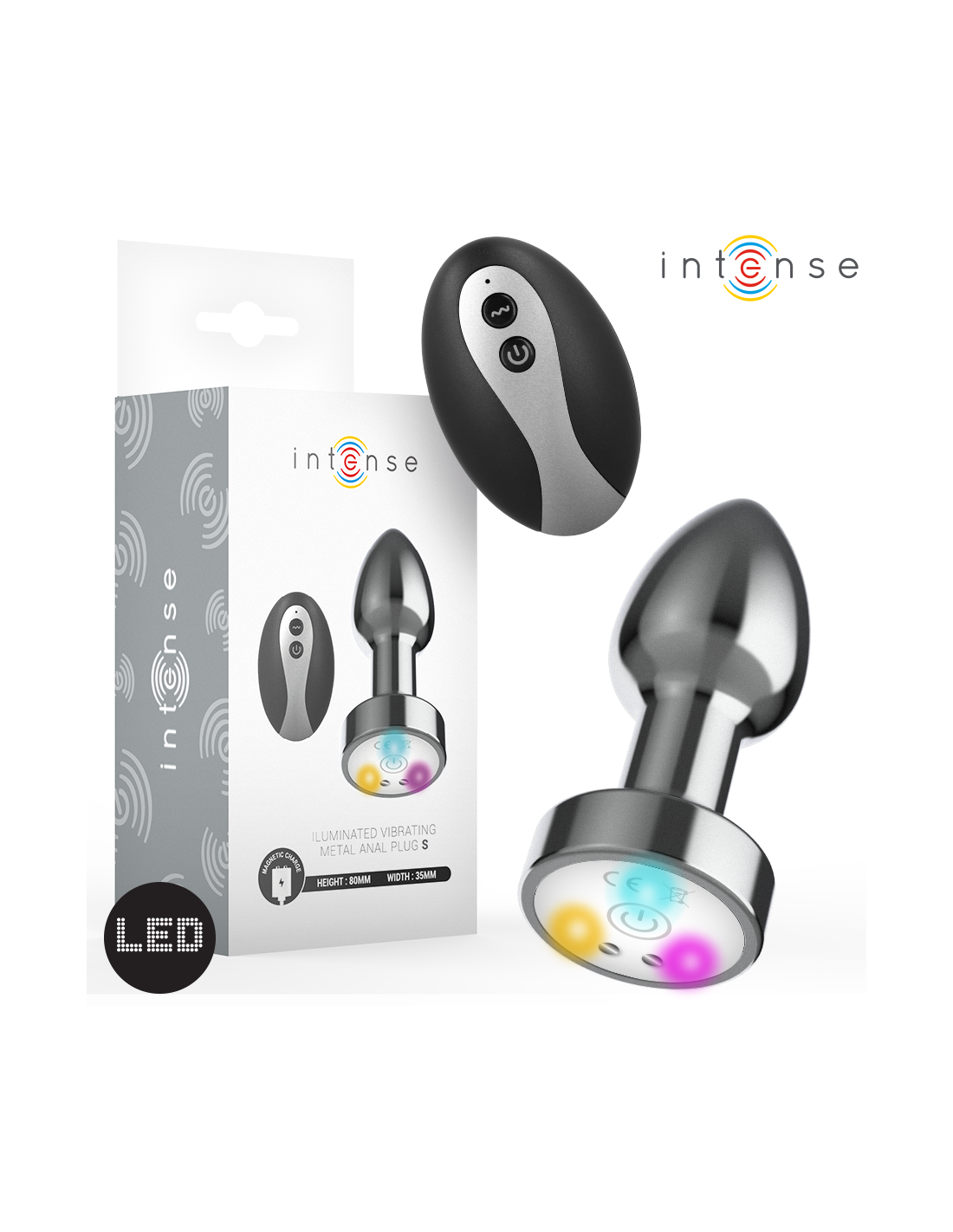 INTENSE - VIBRATING METAL ANAL PLUG WITH LED LIGHTS AND REMOTE CONTROL - SIZE S