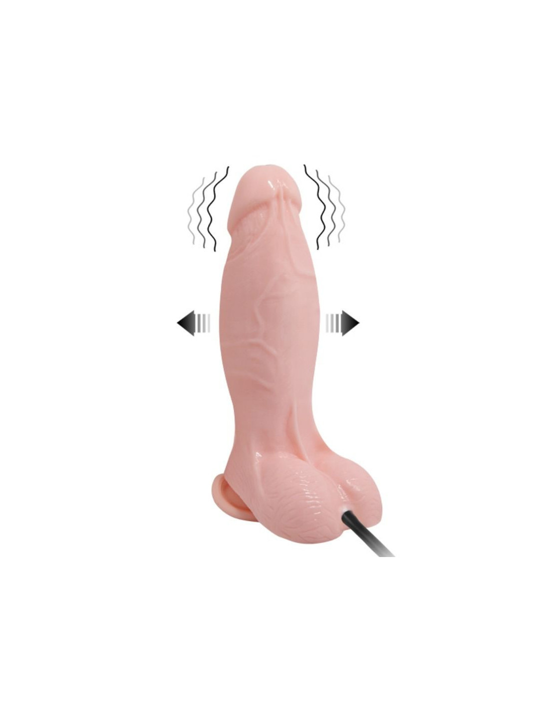 When inflating, it doubles the width of the shaft and its ergonomic inflator with quick air release valve helps you control it at all times. Its venous axis to enhance stimulation and its firm testicles make it even more realistic. It has multi-speed vibrations and a strong suction cup on the base for hands-free use.