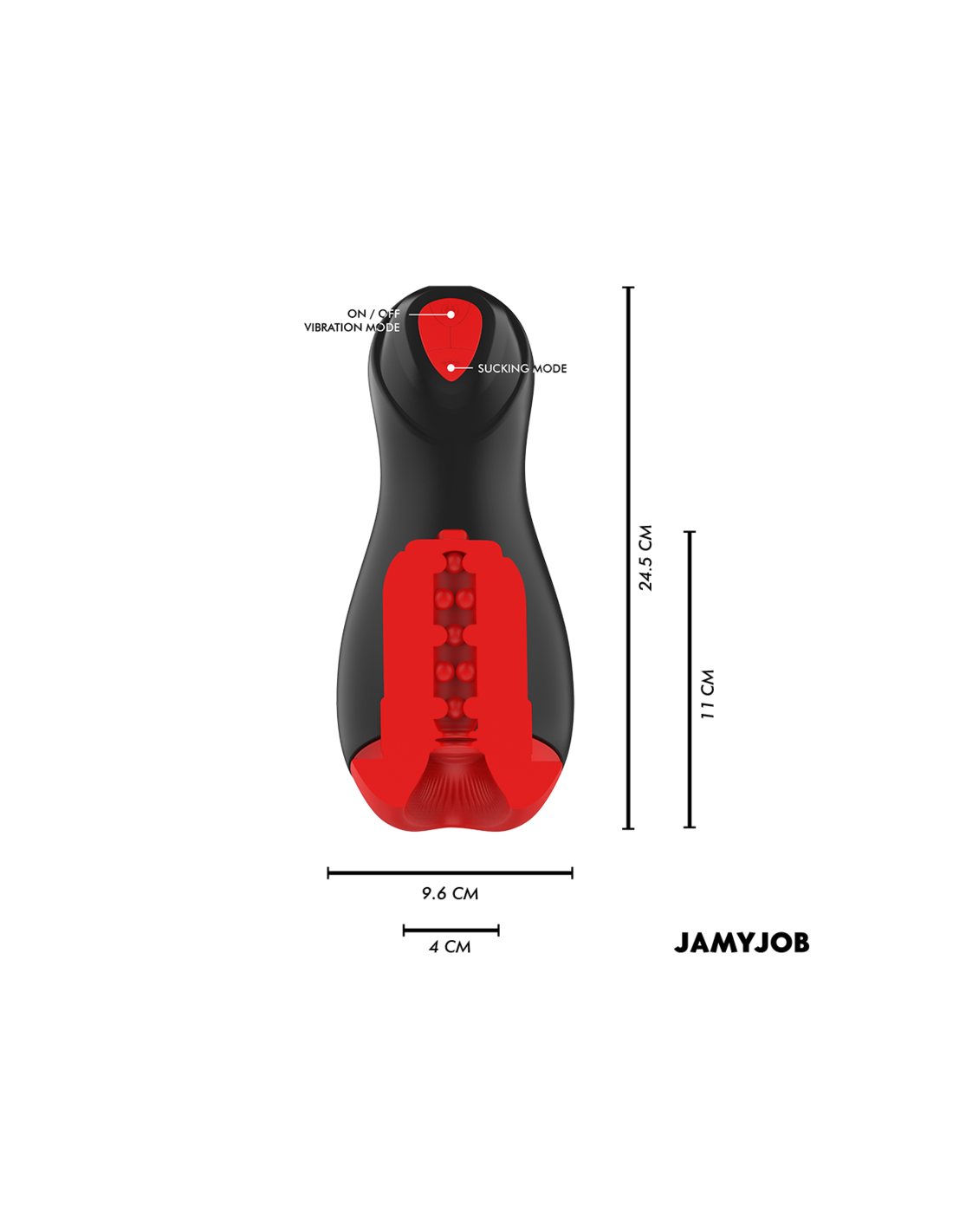 The JAMYJOB CORE-X Automatic Mouth-Shaped Male Masturbator is an innovative and stylish device designed to provide a high-quality, stimulating and pleasurable experience. Featuring a black and red design with red accents, this masturbator combines aesthetics and functionality in a single product.