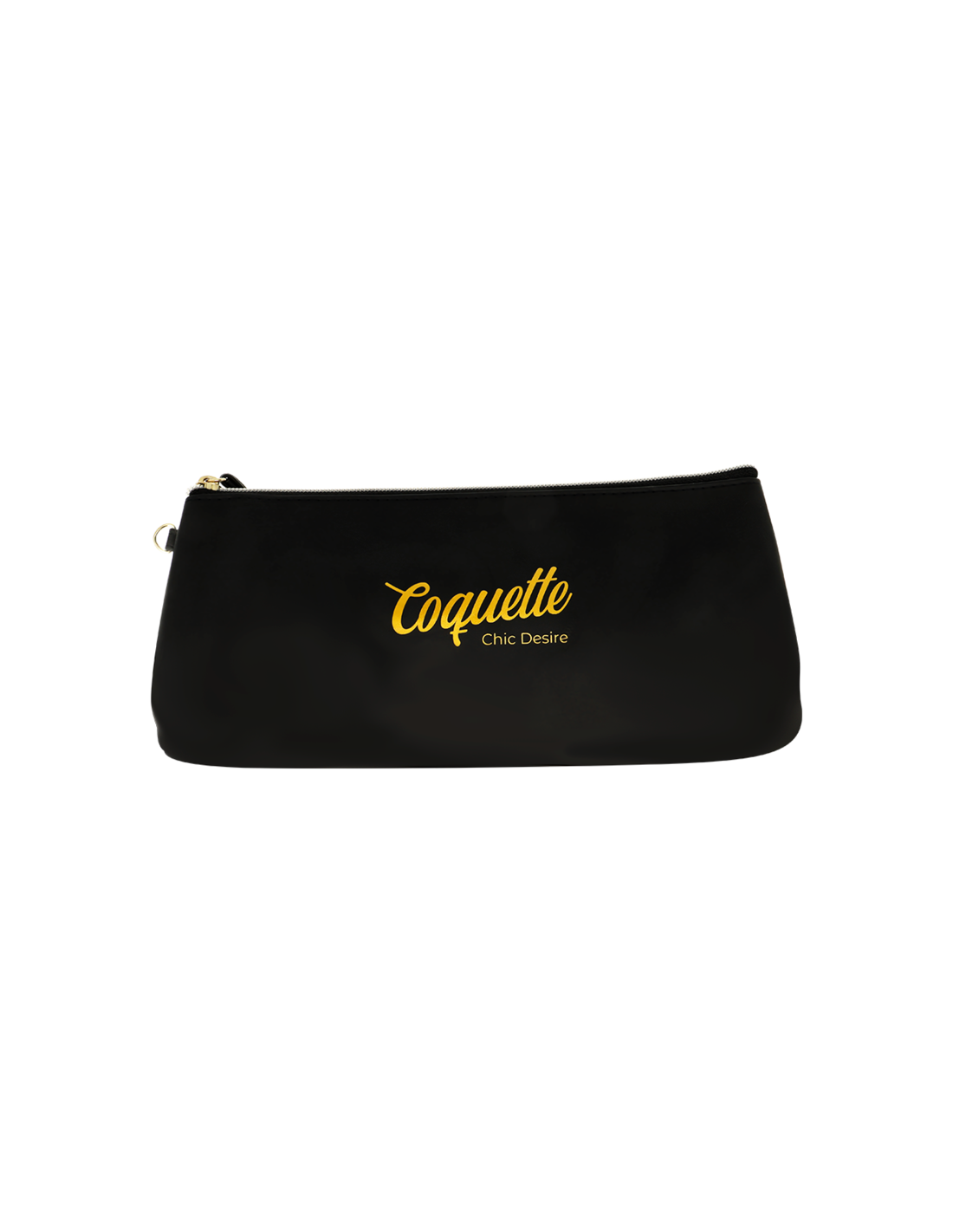 Exclusive and elegant black intimate toiletry bag with the gold logo and silver zipper. An essential item to safely store and preserve your most intimate items such as your favorite sex toy. Lined inside and made of soft and resistant material on the outside.