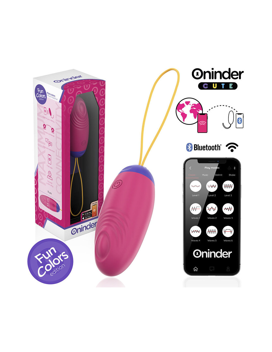 Discover the new ONINDER CUTE Vibrating Egg, designed for those seeking discretion, power, and innovative stimulation. Thanks to its advanced technology, this vibrating egg not only features 9 vibration modes but also incorporates a wave motion, offering a unique and enveloping sensation. Available in three vibrant color combinations: