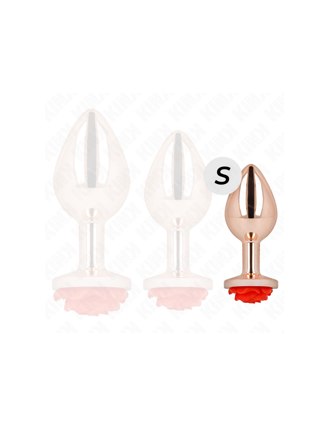 Rose Gold Metal Anal Plug with Red Rose Adornment - Elegant, Smooth and Sensual