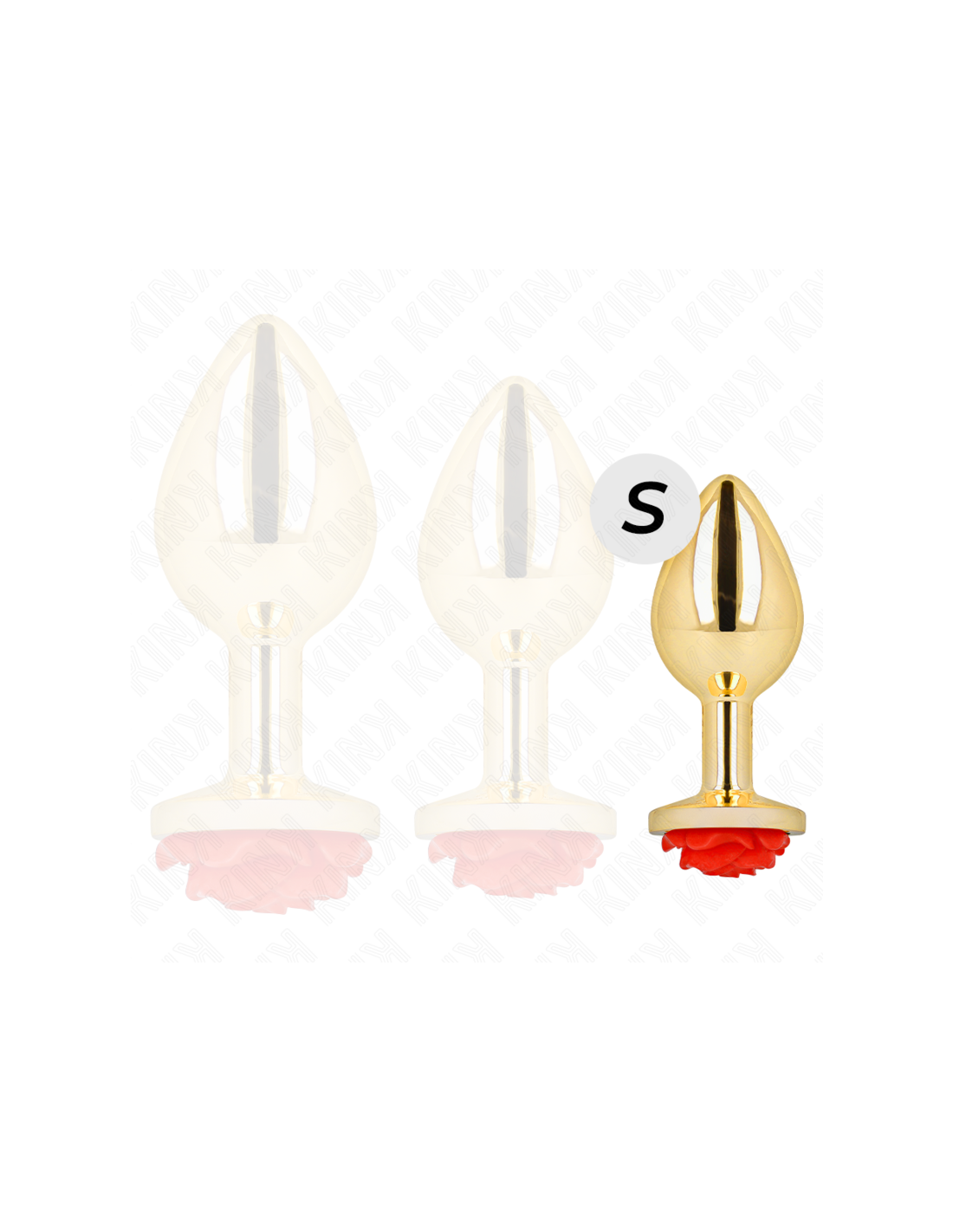 Golden Anal Plug with Red Rose Decoration - Smooth, Elegant and Pleasant