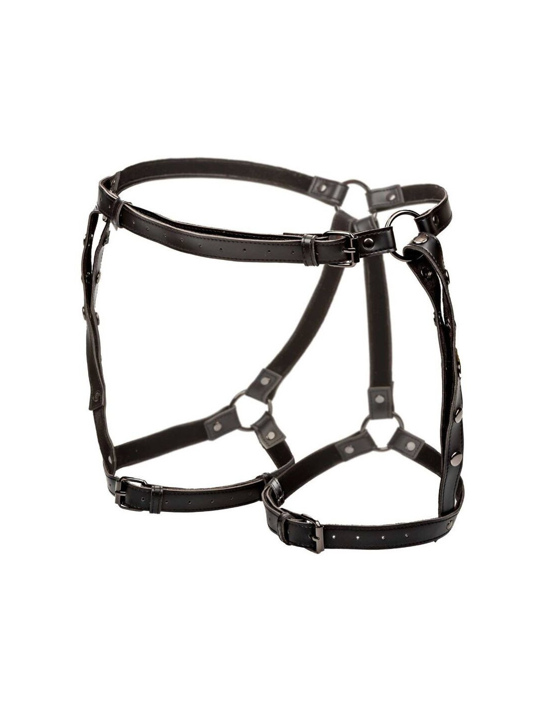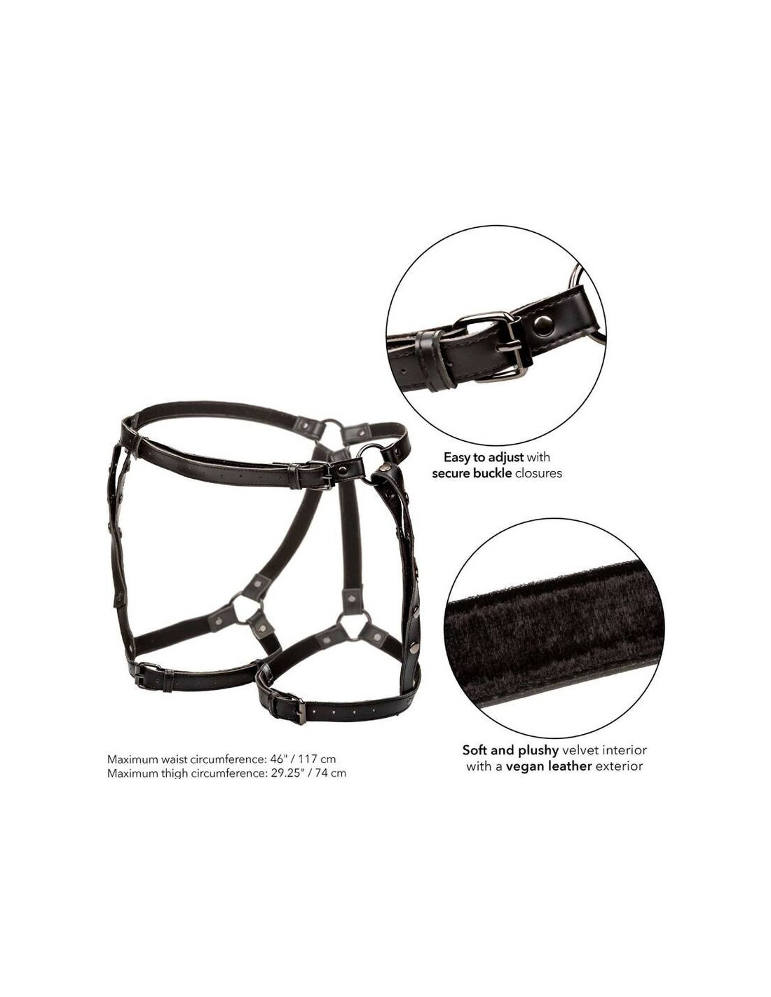 CALEXOTICSElevate the pleasure with the Multi Chain Thigh Harness from the Euphoria Collection: a premium accessory for intensified desires. Adjustable waist and thigh straps ensure a comfortable fit with a simple buckle closure. The contemporary design ensures durability and improves overall satisfaction. Enjoy the luxurious feel of the soft velvet interior and the touch of sophistication of the vegan leather exterior. The sturdy construction with double padding and stitching ensures comfort during passionate encounters. Non-tarnish metallic accents add glamour, creating a stunning and enticing visual appeal. With its versatile design, it fits most standard sizes. Unleash your desires and explore new levels of excitement with the Collections Multi Chain Thigh Harness