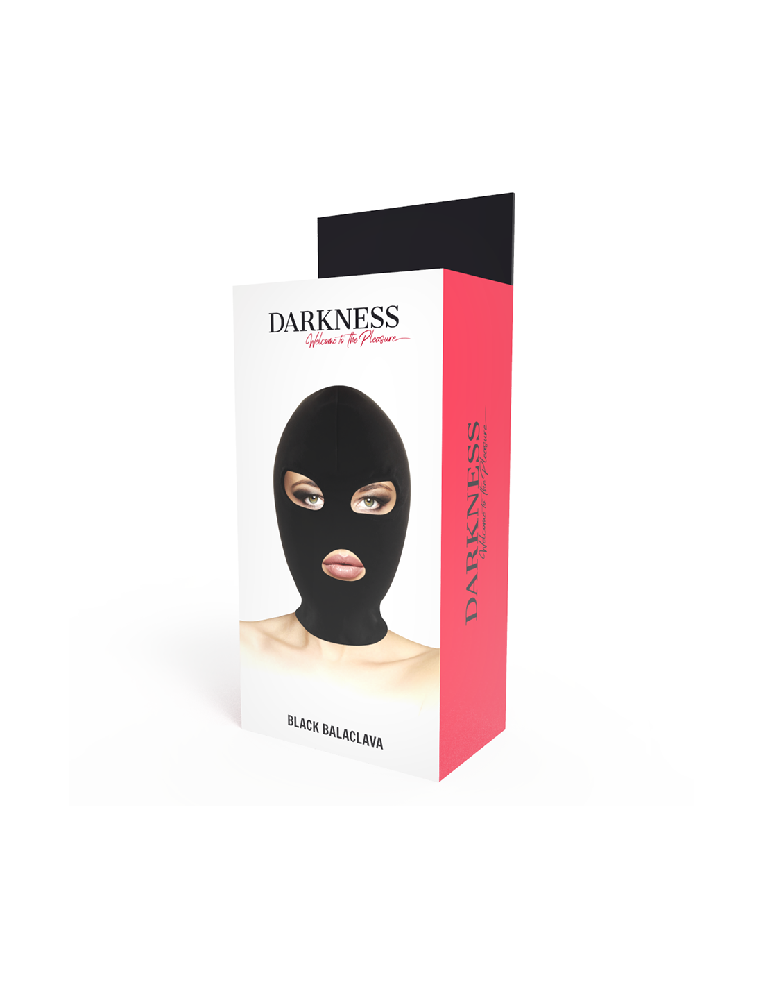 Comfortable mask/hood with opening for mouth and eyes. It is designed to fit perfectly to the head. The fabric only allows a sliver of light to enter, which prevents vision and awakens other senses. The mask/hood works for both sexes, and its thin, light fabric allows you to breathe easily and hear any clicks. And, best of all, you'll have access to his mouth!