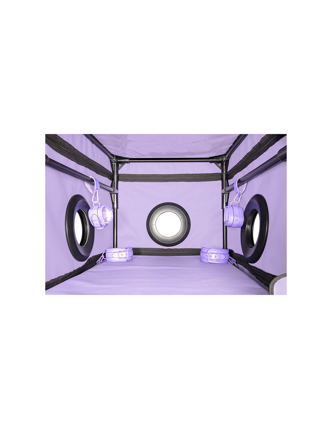 Designed for those who know that pleasure lies in the details, LA NICHE is the secret corner where submission meets aesthetics, and control becomes art. This intimate cabin, in a provocative purple hue, is designed to provide intense experiences of restraint, exhibitionism, and role-playing, all in a compact yet deeply immersive space.