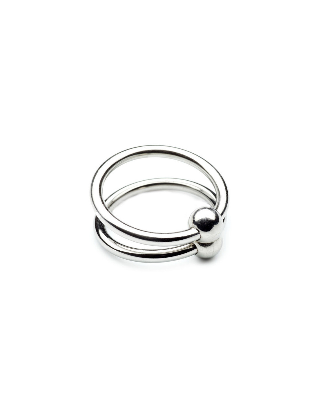 Cockring composed of two steel rings that surround the base of your penis, also of different sizes, so that it fits when erect. Everything has been designed so that both the aesthetics and the sensation are optimal.