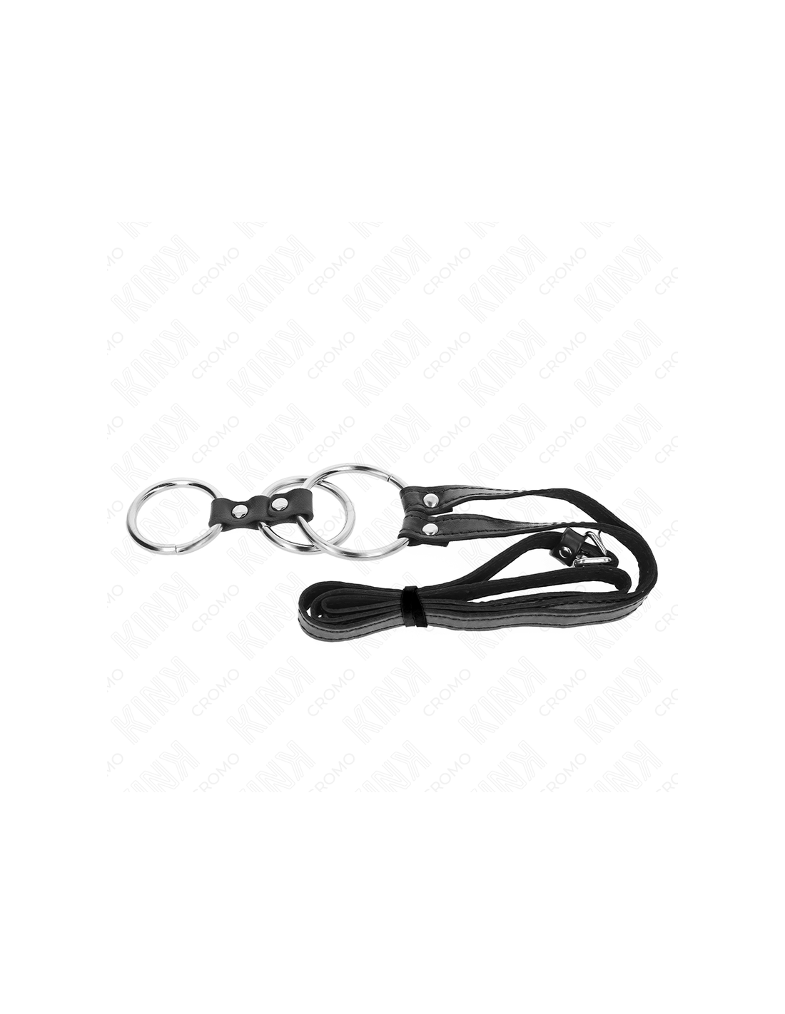 KINK - TRIPLE METAL PENIS RING 3.8 CM TO 5 CM WITH LEATHER BELT 112 CM