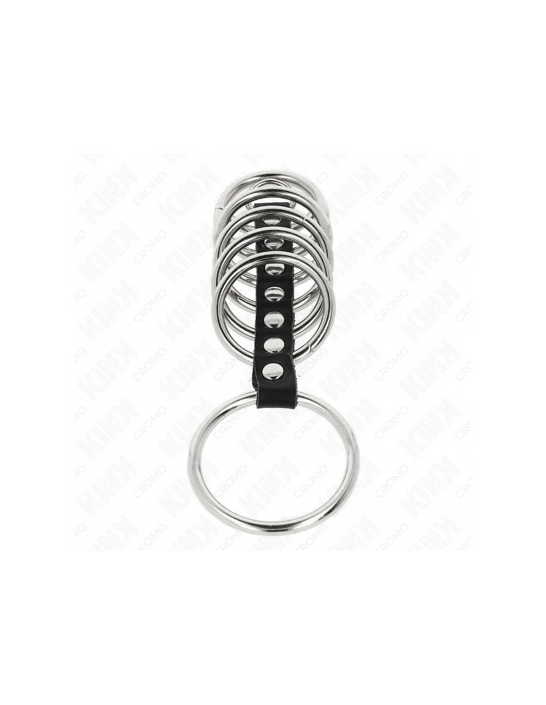 KINK - 7 METAL PENIS RINGS 3.2 CM TO 5 CM CONNECTED BY LEATHER