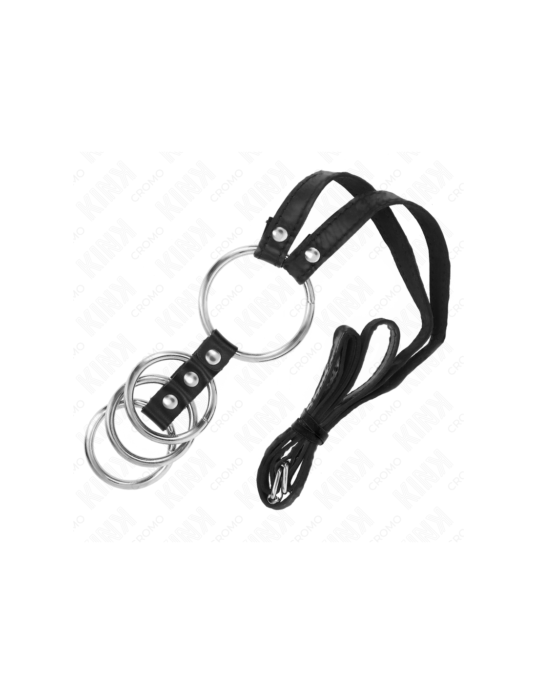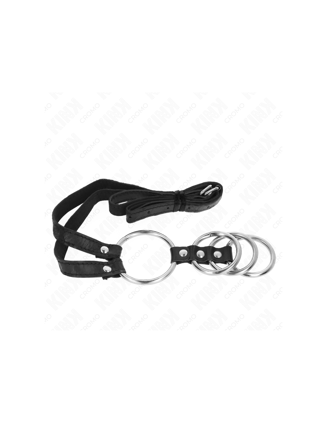KINK - 4 CONNECTED METAL PENIS RINGS 3.8 CM TO 5 CM WITH LEATHER BELT 112 CM