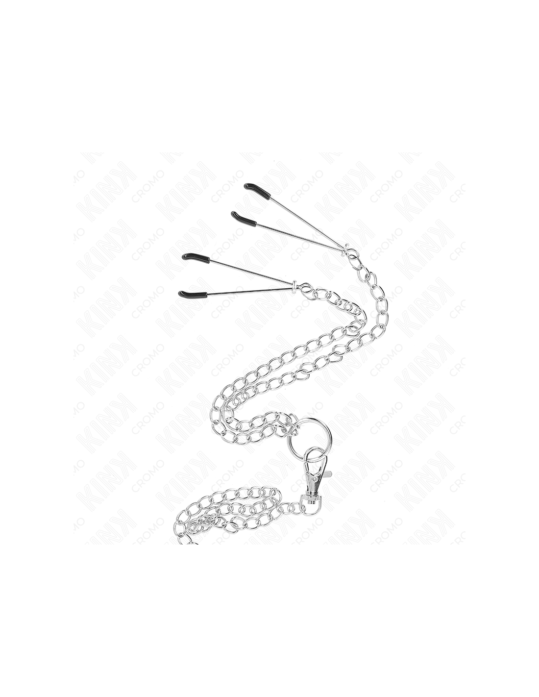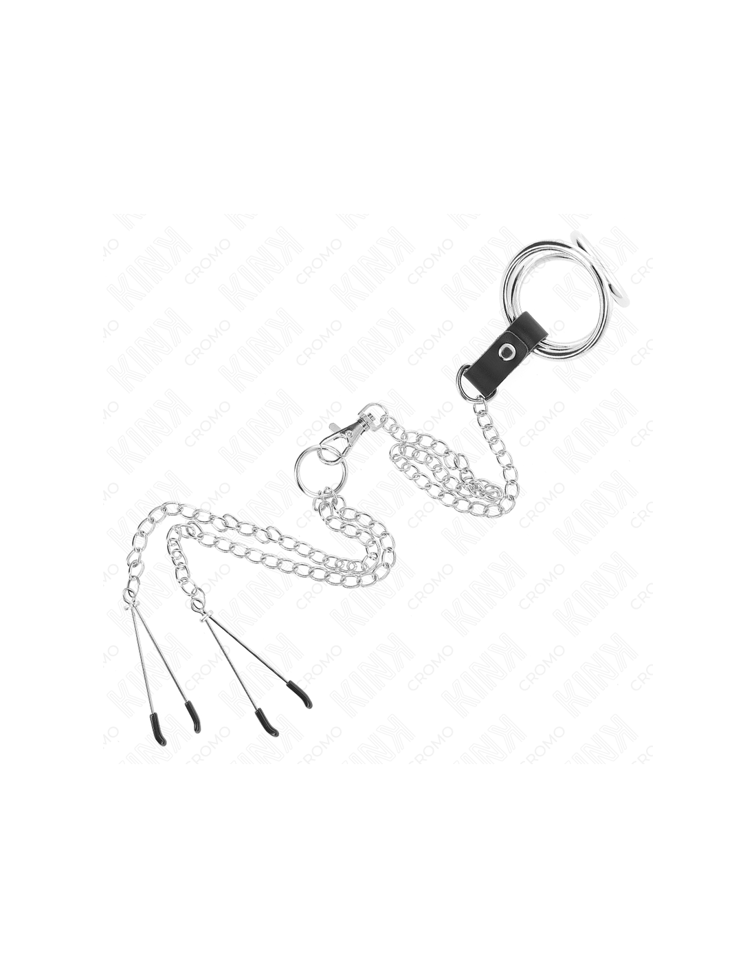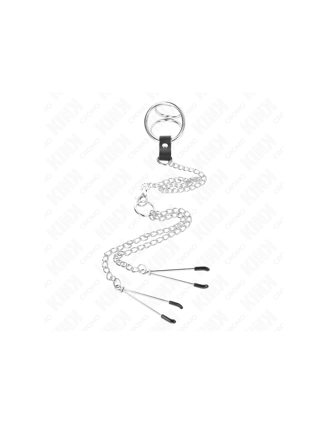 KINK - TRIPLE CHROME METAL PENIS RING 3.8 CM TO 5 CM WITH 26 CM METAL CHAIN AND NIPPLE CLAMPS MODEL 2