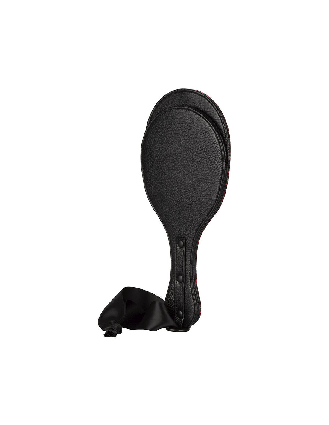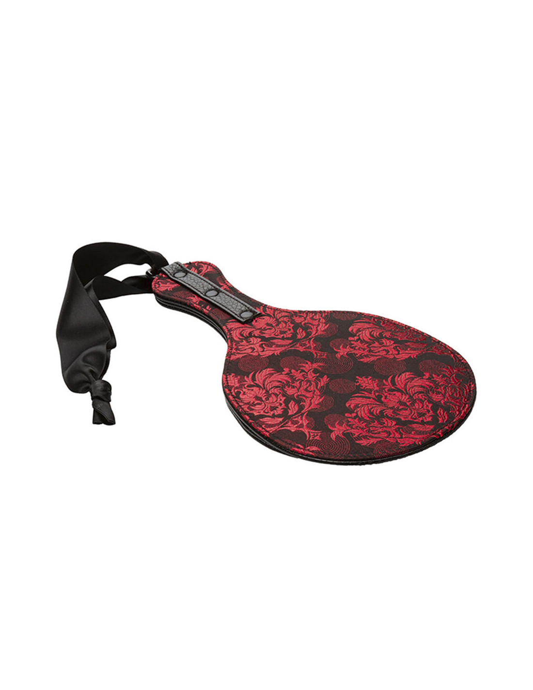 For the nights you're feeling extra naughty, indulge in the indulgent taps of the Scandal® Round Double Paddle. Effortlessly plant stinging taps on your submissive with the plush dual layer paddle and sturdy handle. Punishment and pleasure go hand in hand with the dual paddle with an edgy leatherette interior and silky brocade exterior. The sub in your love will love each stinging spank of this sturdy double stitched paddle and obey your every command as the dual paddle delivers powerful clapping slaps.The plush paddle is designed for both beginners and experienced erotic lovers to try out gentle taps for anyone looking to explore or plant breathtaking slaps that experienced fetishists crave. Unleash naughty desires and enjoy an evening of uninhibited pleasure play.