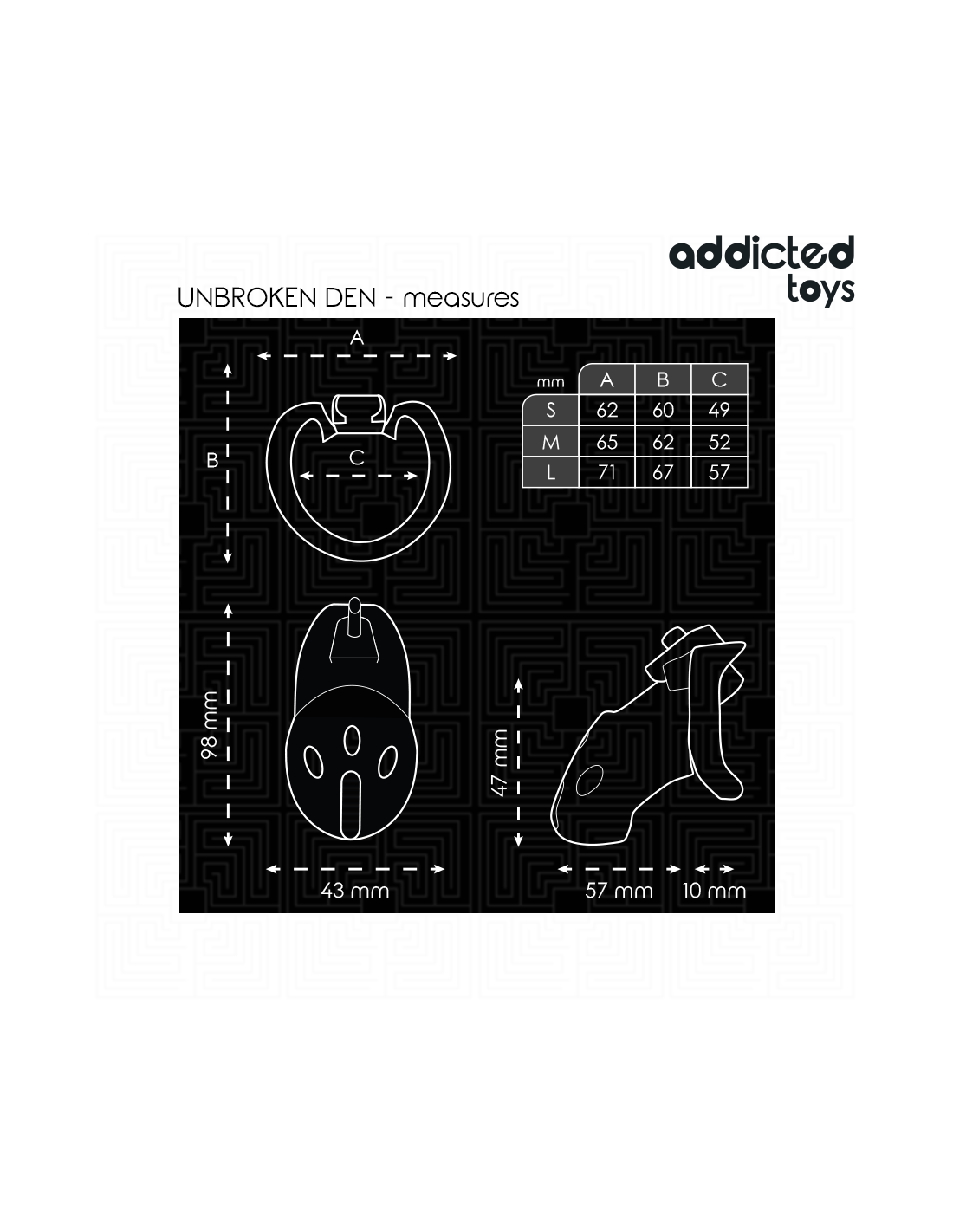 - Height of the penis cage: 98mm