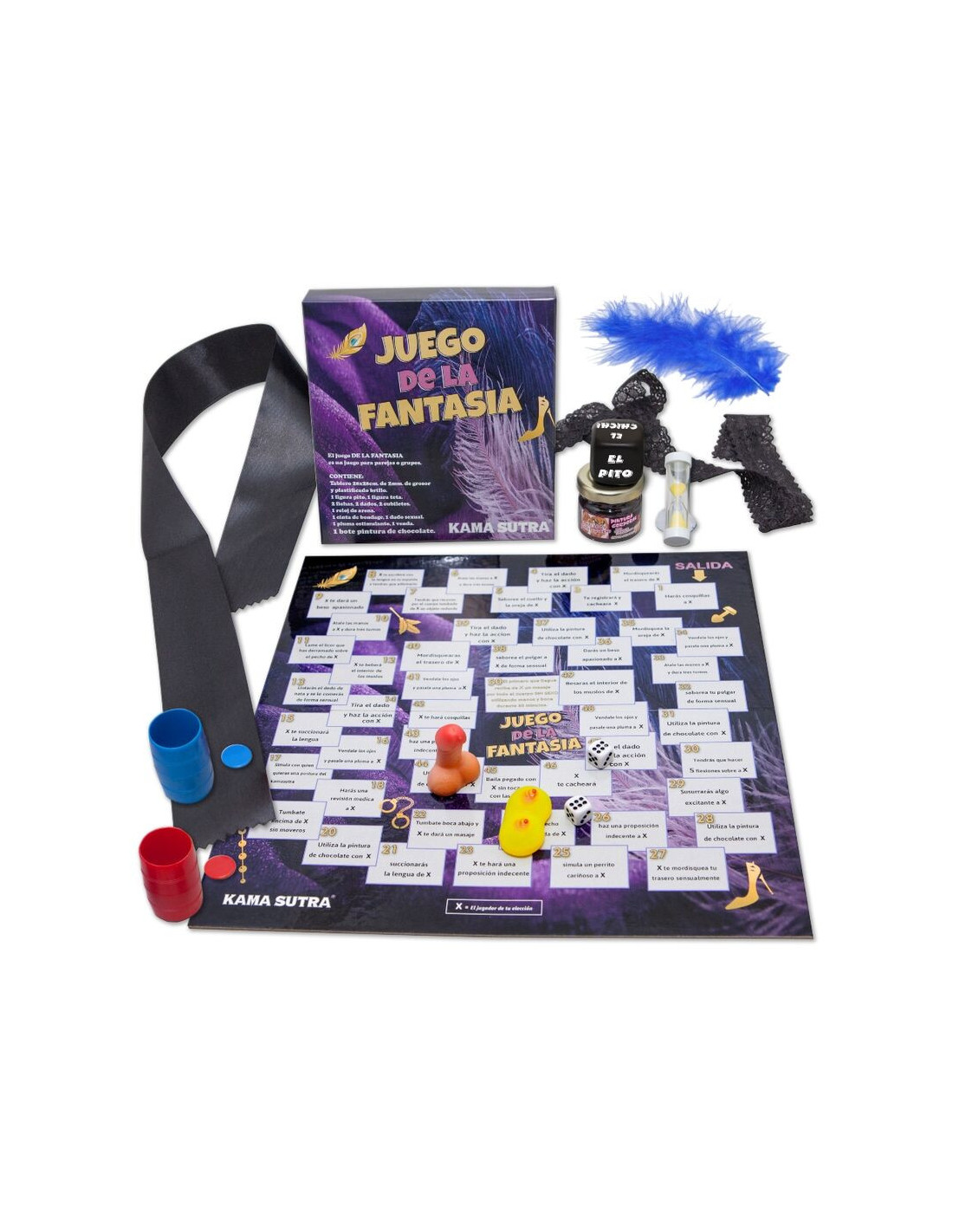 IT CONTAINS: POT OF EDIBLE PAINT CHOCOLATE FLAVOR 30 ml, INSTRUCTIONS, BONDAGE TAPE, EYE BAND, STIMULATING PEN, A HIGH QUALITY DICE, HOURGLASS, 1 PENIS FIGURE AND TIT FIGURE, 2 TOKENS, 2 CUVETTES, 2 NUMBERED DICE AND A PLASTICIDED BOARD.