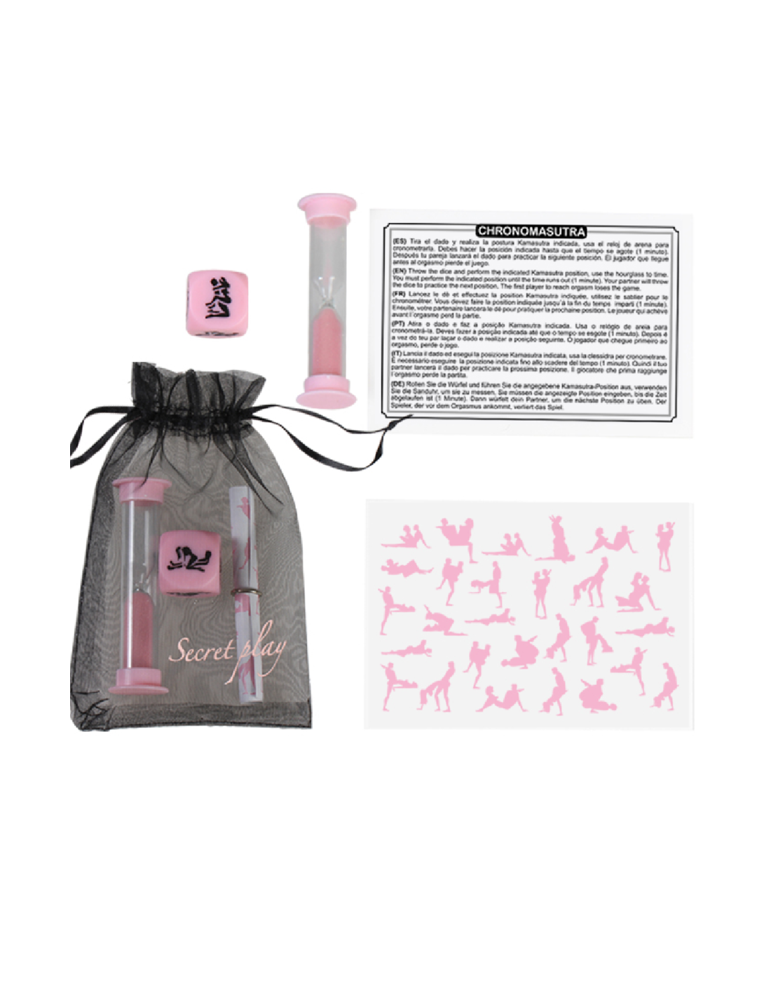 Throw the dice and perform the indicated posture, use the hourglass to time, you must perform the indicated posture until time runs out (1 minute), your partner will roll the dice to practice the next position.