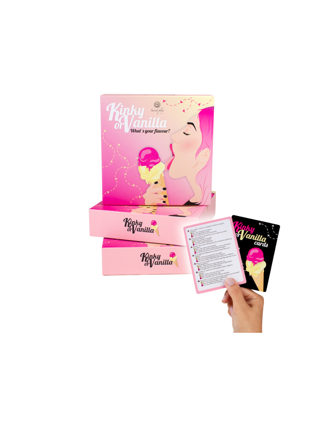 After each turn the players must measure the card at the bottom of the pile. Then it will be the other players turn. When both players have reached the final result Kinky or Vanilla, they will check their compatibility and find out at the end of this booklet which one. type of couple son. After that they can continue the sexual adventure as they wish… The less time it takes for the player to get to the ice cream flavor, the more Kinky or Vanilla it will be.