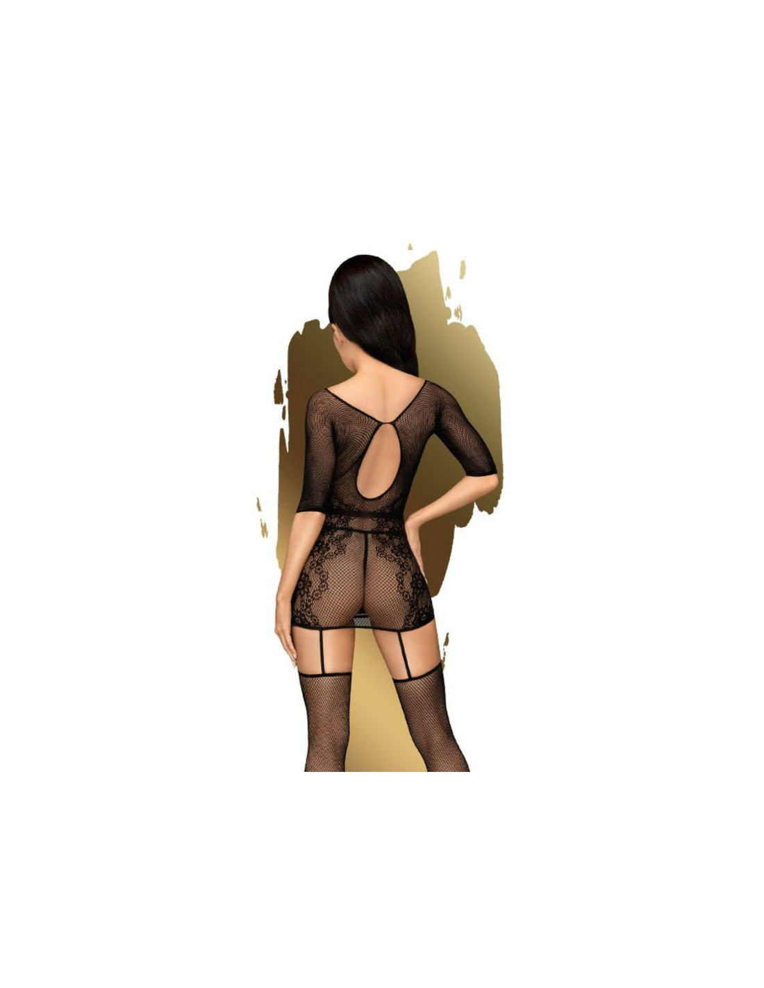 • With this sexy lingerie you don't take any risks - except to draw everyone's attention! The tight mini dress scores with its body-hugging cut and its fine, transparent mesh fabric, while elegant floral ornaments put your waist and bottom in the limelight. But your legs will also have their big show thanks to the integrated stockings. A special highlight are the keyholes on the front and back of the dress, which allow seductive insights and make you want more.