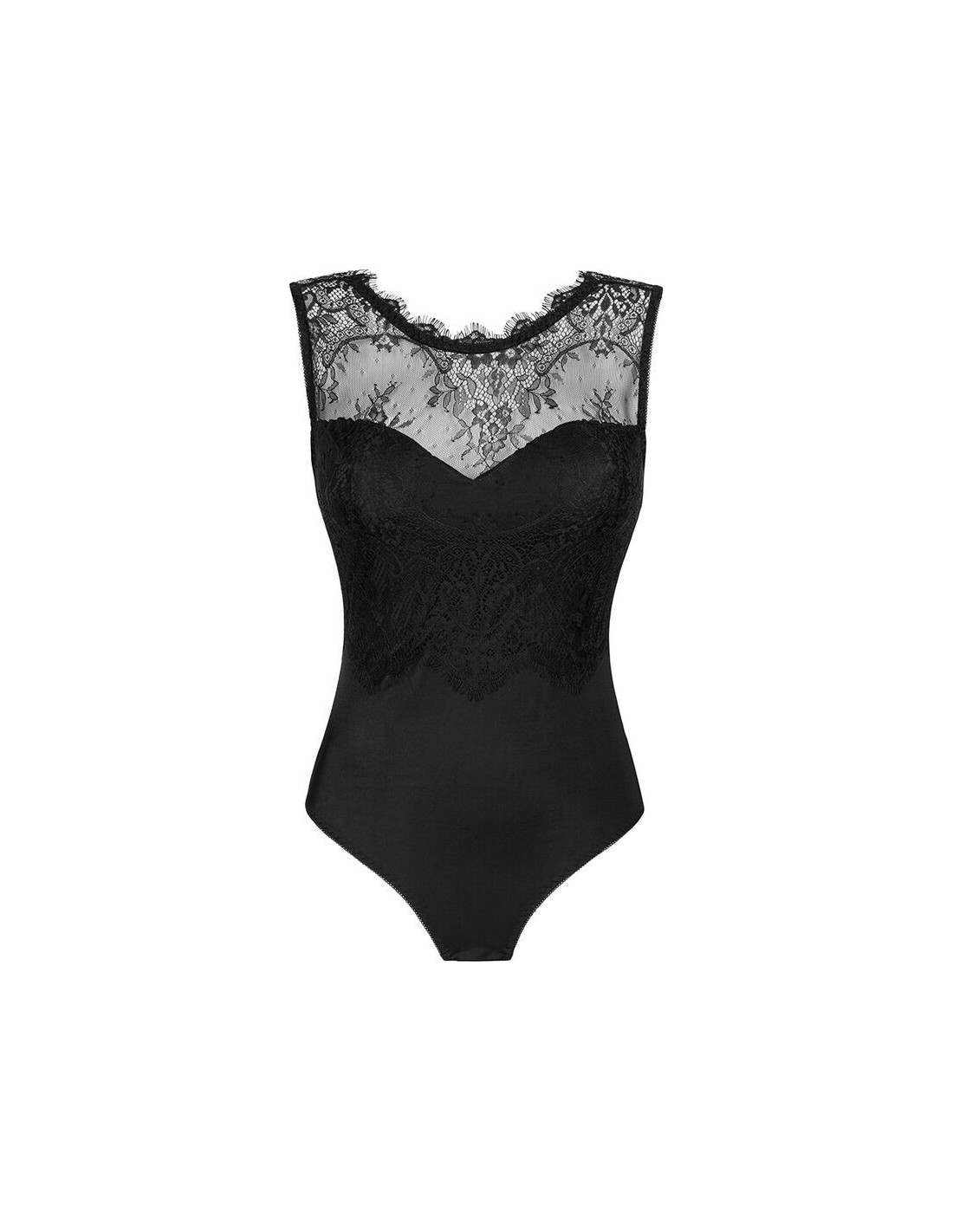 LIVCO CORSETTI BODIESThe Mudienin model is a universal black bodysuit that will work not only in the bedroom, but also as part of an everyday outfit. The design uses sensual and feminine lace and smooth, subtly shiny material, which together guarantee an effect of chic and sensuality. The bodysuits have a classic cut with a cutout at the back. They reveal the buttocks while covering the bust area with subtle lace. The lace accent also appears on the back of the costume, which draws the eye to women's shoulder blades and arms.
