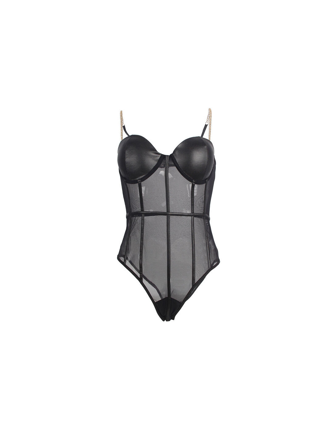 Discover the perfect balance between sensuality and elegance with the One Piece Metal Strap See Through Underwire Bodysuit from the Subblime brand. This bodysuit has been meticulously designed to highlight your figure and add a bold touch to your lingerie wardrobe.