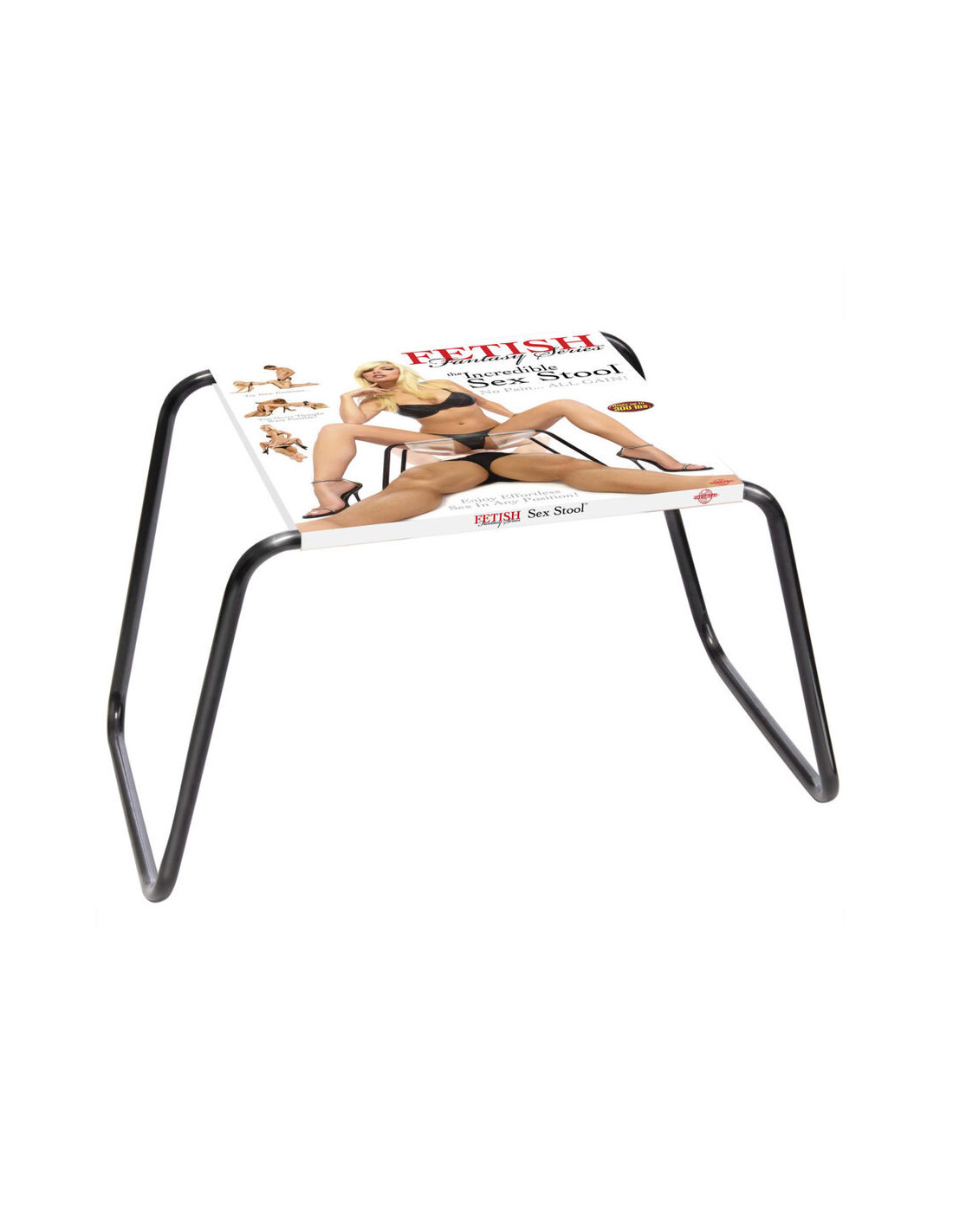 The Fetish Fantasy Sex Stool is designed to play hard--it holds up to 300 lbs. and is constructed with a heavy duty tubular steel frame which you can take apart for easy storage. The seat is flexible, easy to clean, and made from high-strength TPU.