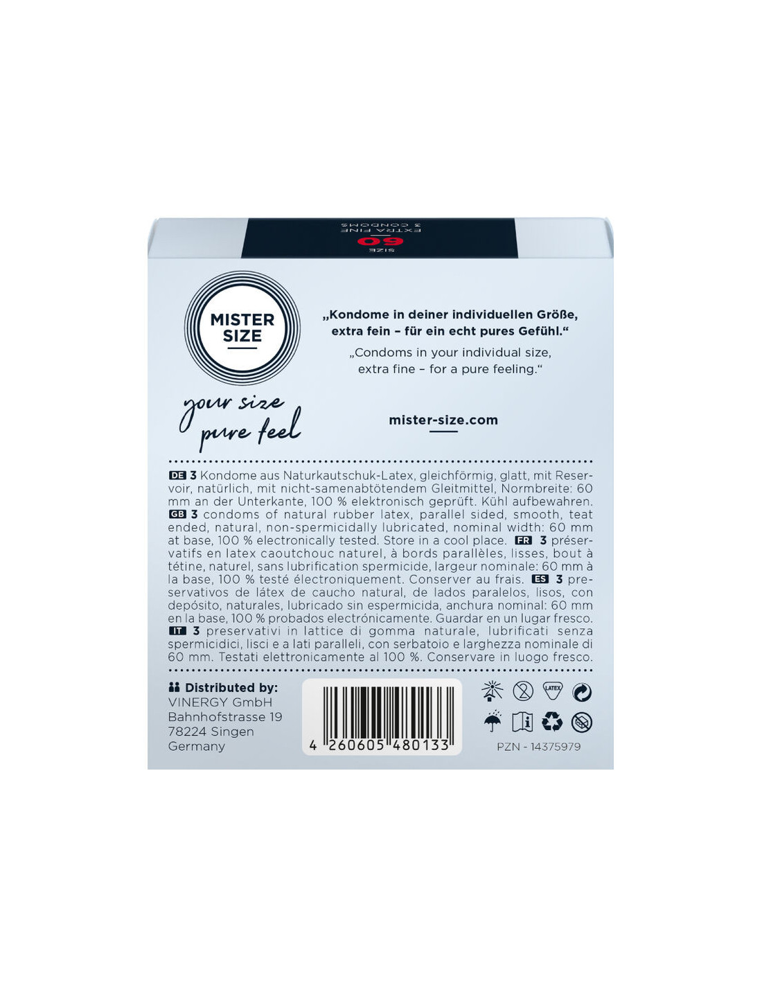 in a condom that is too tight. But rest assured, with MISTER SIZE 60 everything fits perfectly and you can relax and fully concentrate on all the good things. So enjoy the moment and fly to unexpected heights.