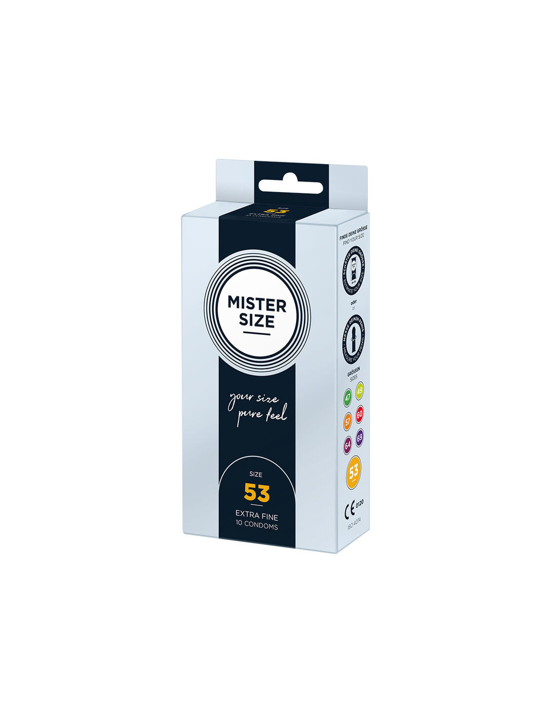 MISTER SIZE gives you a completely new sensation during sex while offering optimal safety. All our MISTER SIZE condoms comply with DIN EN ISO 4074:2002 and are subject to thorough testing. Having a condom with optimal safety generates confidence and security that allows both partners to relax and let themselves go completely during the sexual act.