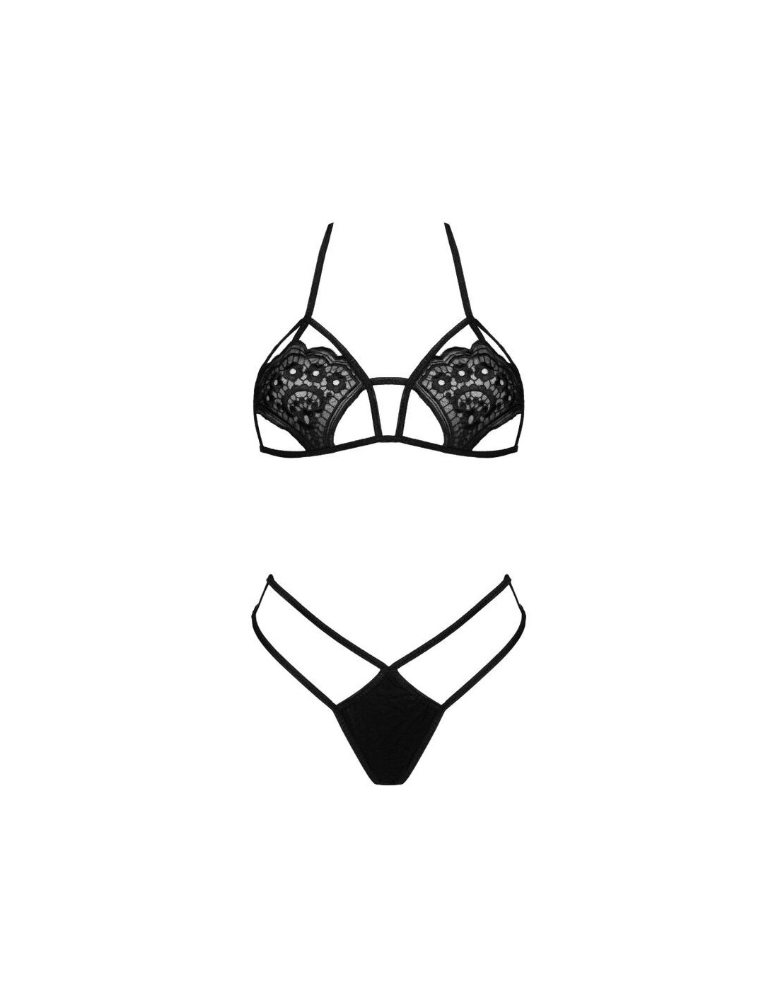 LIVCO CORSETTI SETSJimena's unusual and spicy set consists of a bra and matching thong. The black straps further accentuate her seductive character.