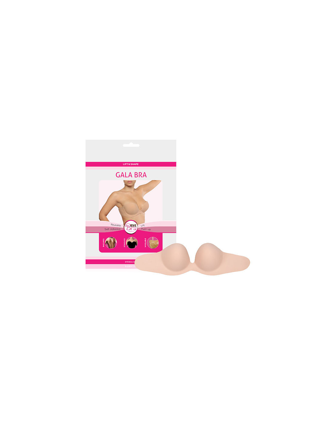Underwired and strapless, the Gala Bra securely adheres to the skin due to the premium polyolefin adhesive gel technology making it the ideal solution to any strapless or backless outfit. The soft and naturally molded foam cups together with the adhesive silicone gel on the cups’ push up pads provide support, freedom of movement and superior comfort.