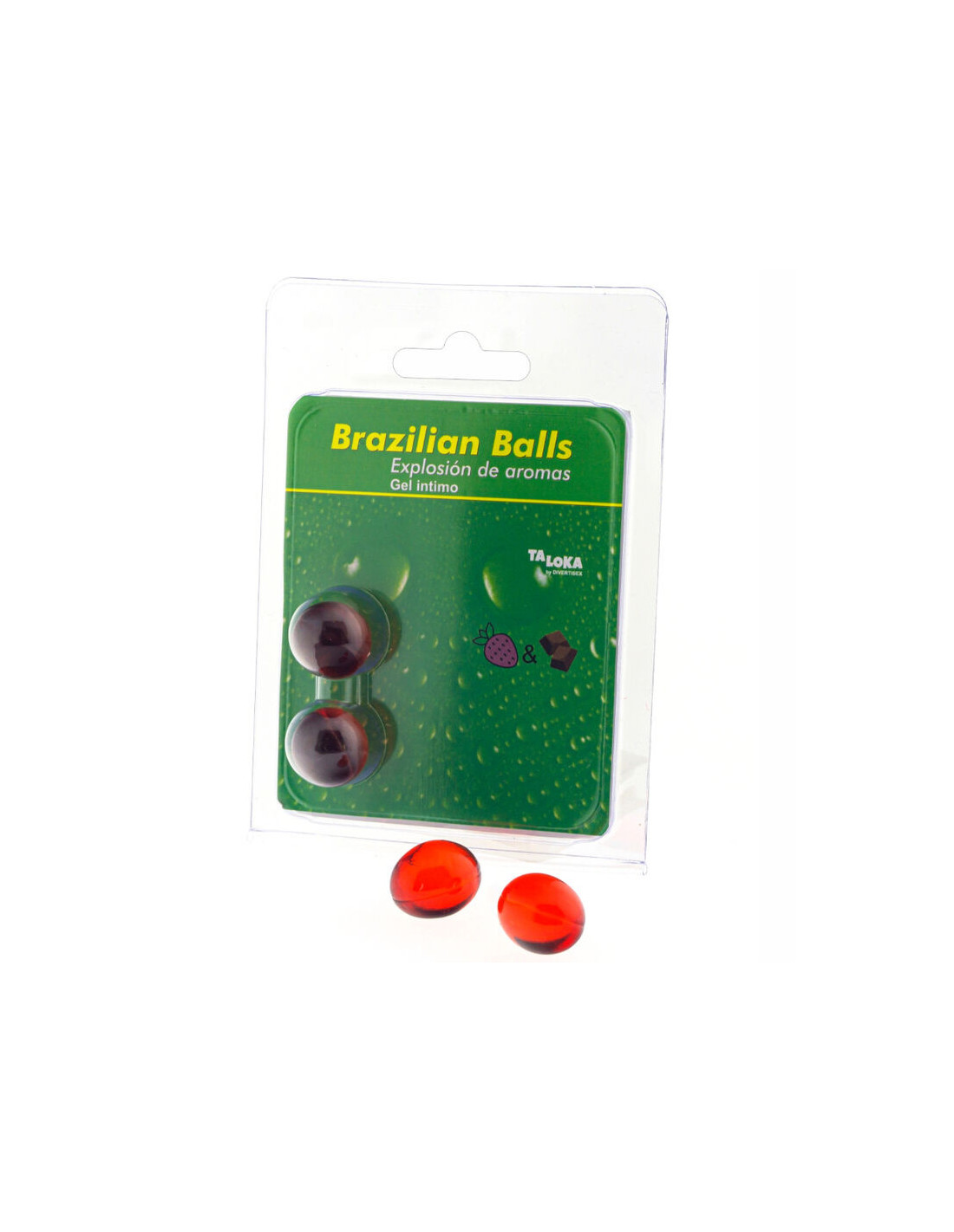 2 Brazilian balls with LUBRICANT THAT PROVIDE AN EXPLOSION OF PLEASURE WITH A MIX OF EXCITING SENSATIONS WITH A PASSIONATE AROMA OF STRAWBERRY & CHOCOLATE.