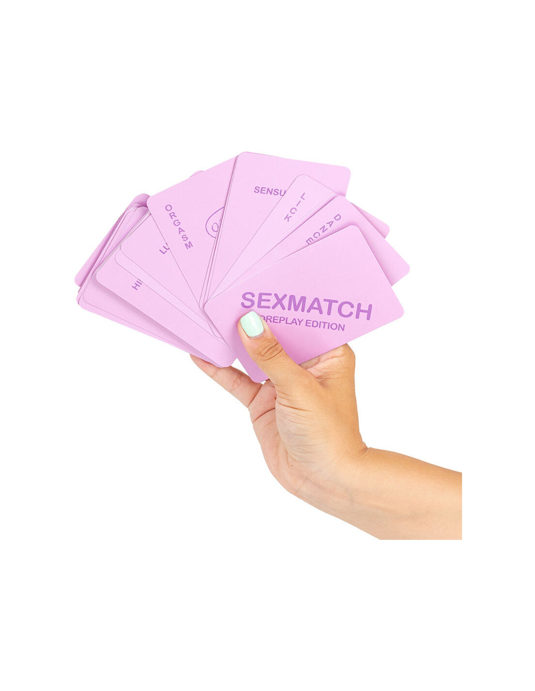 Sexmatch Foreplay Edition es el juego de cartas para parejas en el que debes hacer coincidir ilustraciones y palabras realizando desafíos hasta que uno de los dos se quede sin cartas. El juego contiene 89 cartas de juego (81 cartas y 8 comodines) y 1 carta guía.