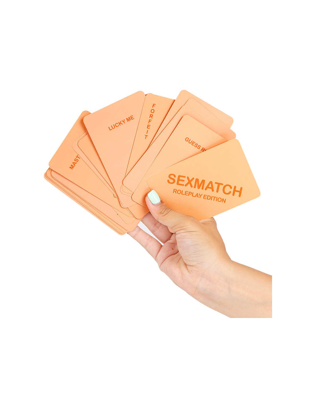 Sexmatch Roleplay Edition is the card game for couples in which you must match illustrations and words by completing challenges until one of you runs out of cards. The game contains 89 playing cards (81 cards and 8 jokers) and 1 guide card.