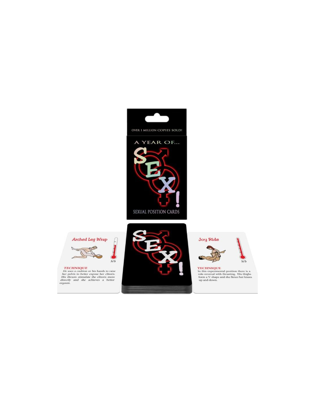 Use the cards as positional references or play one of the three SEX! games to build your fantasy. Each A Year of SEX! card offers a sex position illustration, technique instructions, and a challenge rating of 1-5, with 5 being the most intensely orgasmic.