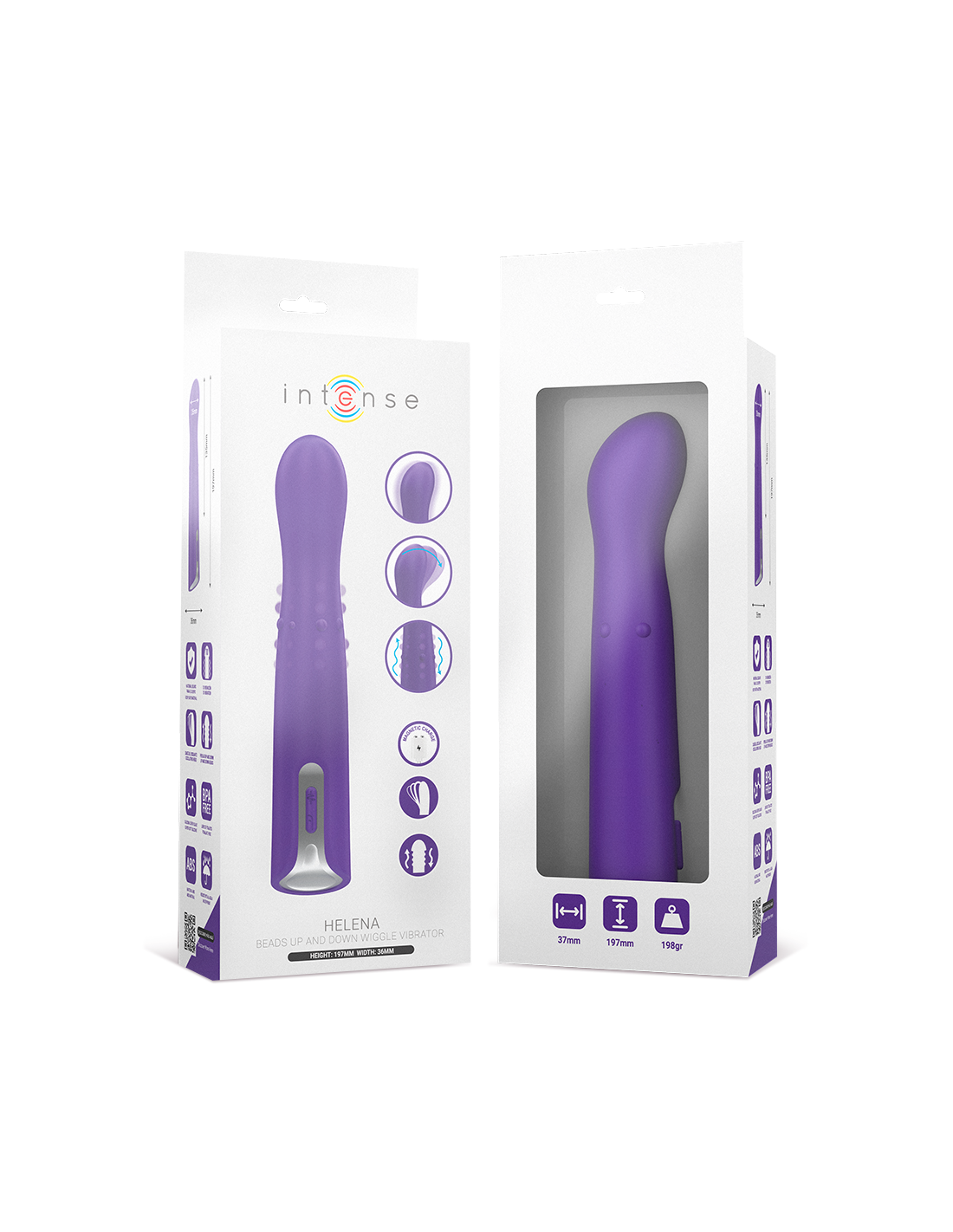 Discover a new dimension of pleasure with the Helena Up & Down vibrator from Intense, a sophisticated stimulator that combines advanced technology, ergonomic design, and unmatched power. Its innovative Up & Down mode with internal bead system provides a vertical movement that simulates real penetration, while its oscillating head precisely massages the G-spot, offering an intense, immersive, and completely personalized experience.