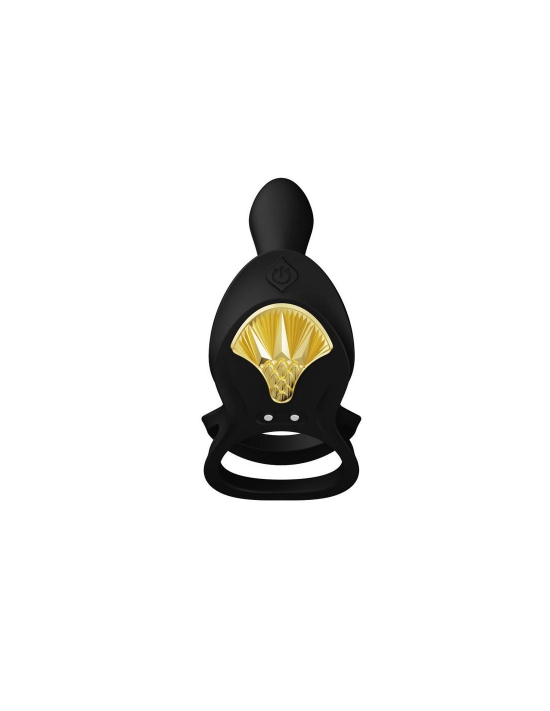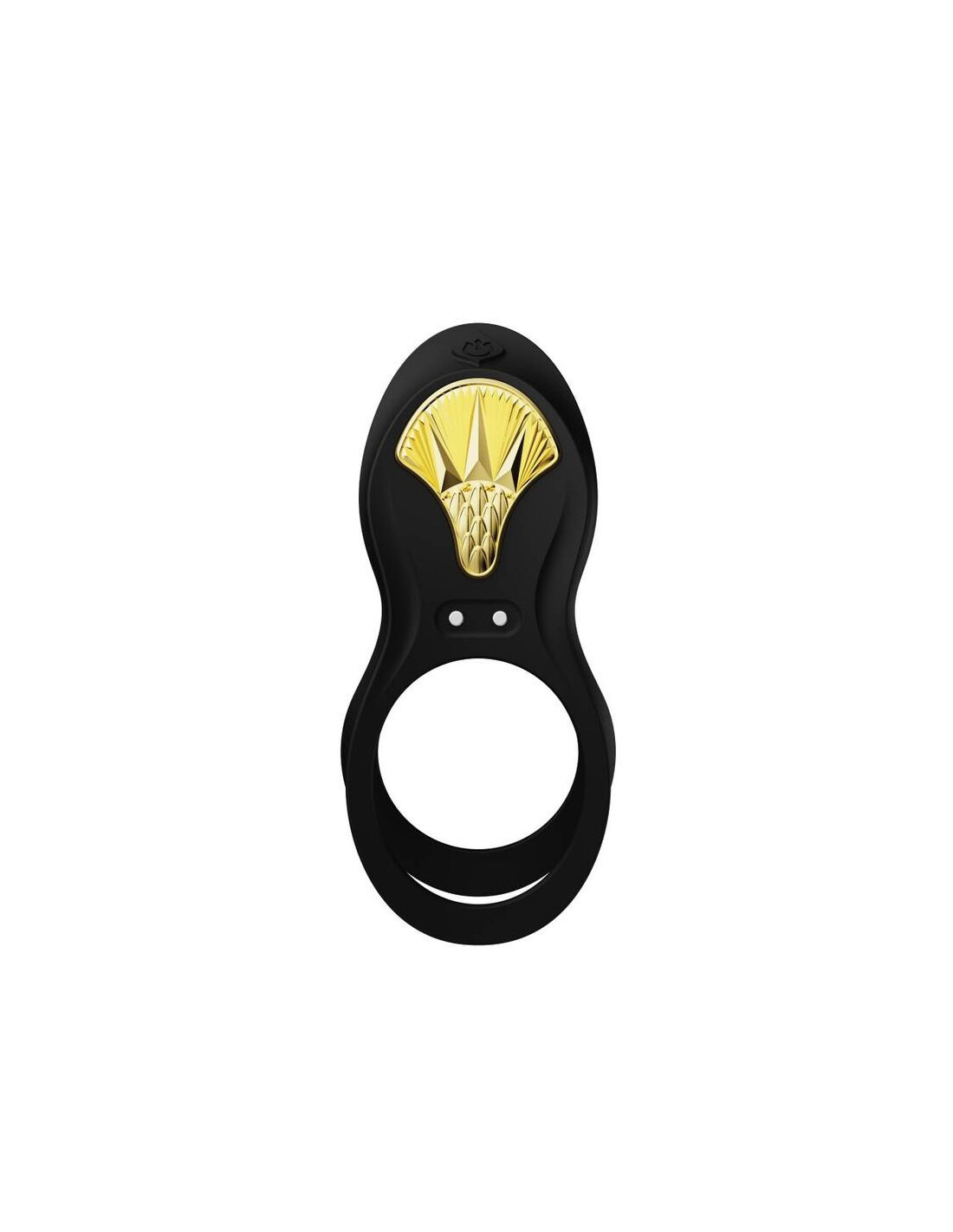 BAYEK is designed to elevate couples’ sexual experiences to epic proportions that are worthy of the gods of ancient Egypt. Sleek, soft silicone covers this ergonomic shape that comfortably fits between two bodies to enhance penetration from the inside and out. Featuring 8 powerful modes of vibration to stimulate the clit as well as the G-Spot, BAYEK features a built-in motor in its extending arm that comfortably fits over the shaft to provide deep internal massage. BAYEK also features dual rings that stretch around the scrotum and base of the penis to enhance erection. It can also be worn around the fingers to enhance stimulation by hand. A beautiful, gleaming golden shield-shaped embellishment adorns the exterior of the device for a boost of style.