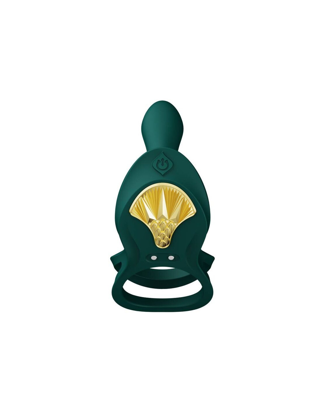 BAYEK is designed to elevate couples’ sexual experiences to epic proportions that are worthy of the gods of ancient Egypt. Sleek, soft silicone covers this ergonomic shape that comfortably fits between two bodies to enhance penetration from the inside and out. Featuring 8 powerful modes of vibration to stimulate the clit as well as the G-Spot, BAYEK features a built-in motor in its extending arm that comfortably fits over the shaft to provide deep internal massage. BAYEK also features dual rings that stretch around the scrotum and base of the penis to enhance erection. It can also be worn around the fingers to enhance stimulation by hand. A beautiful, gleaming golden shield-shaped embellishment adorns the exterior of the device for a boost of style.