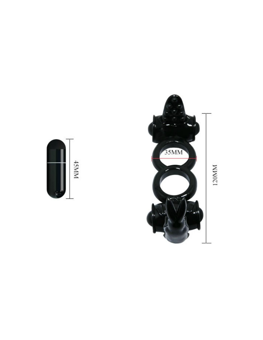 This vibrating ring adapts perfectly to your body. It is made of high quality silicone and includes the rabbit for clitoral stimulation. The vibrating bullet is powerful and easy to handle (On/Off mode). Ideal for couples to enjoy together at the same moment.