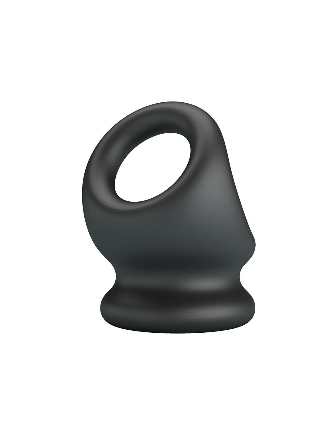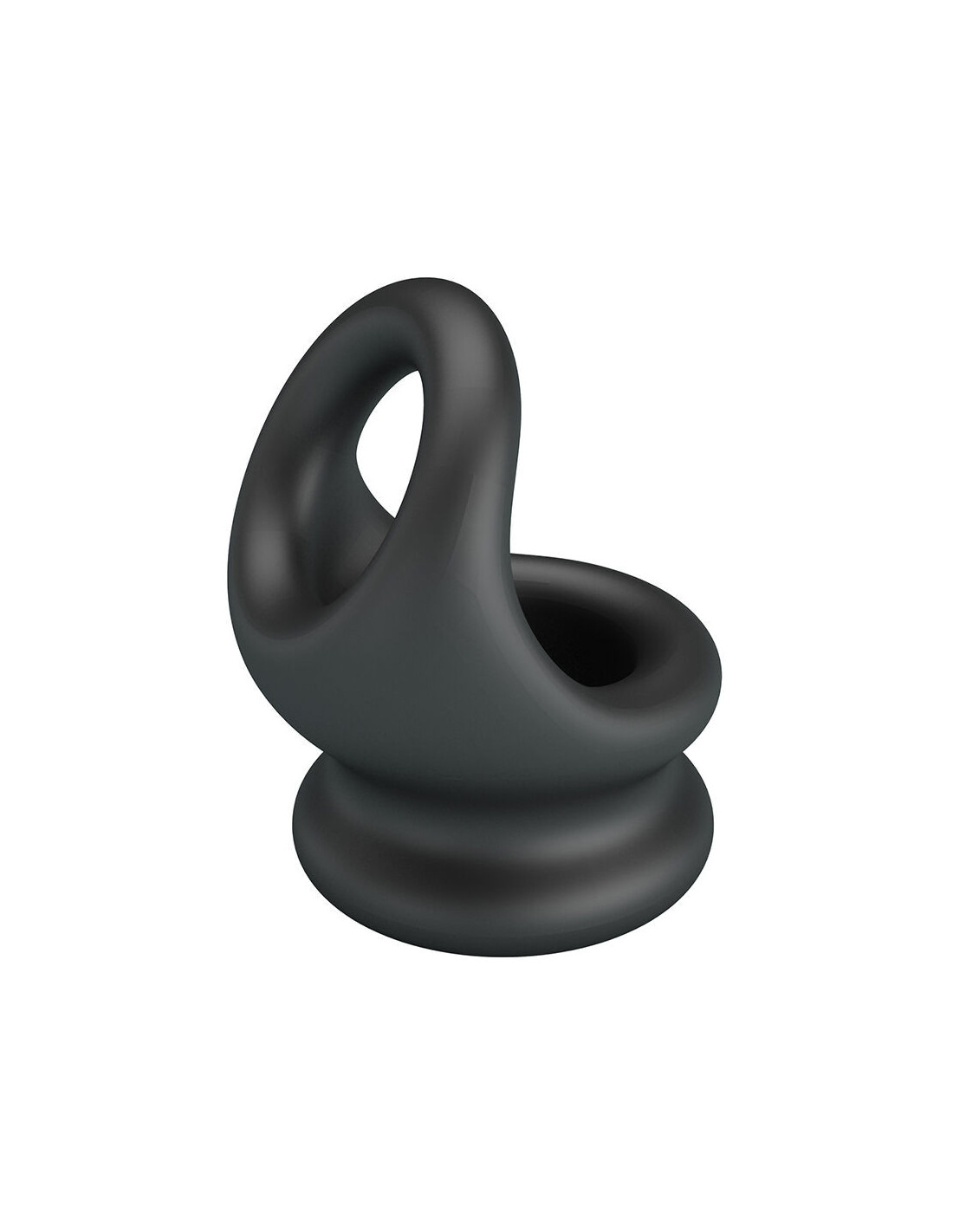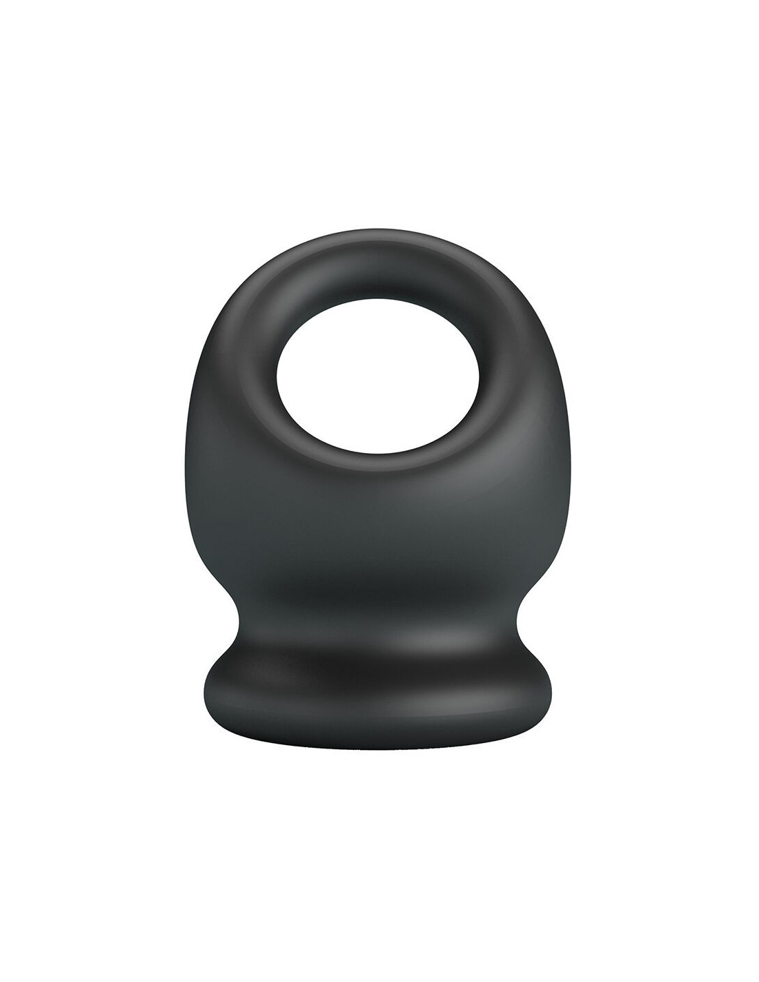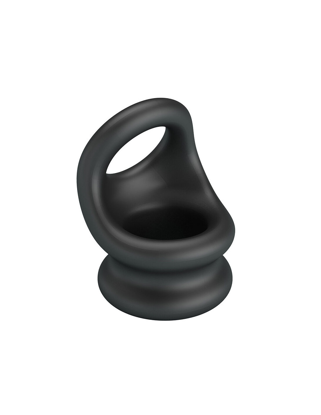 This cock-and-ball ring is made of a soft, stretchy, and skin-safe silicone material. The thick design of this accessory is intended to anchor securely around the erection, gently pulling the testicles down to stretch the scrotum for a pleasurable swinging sensation.
