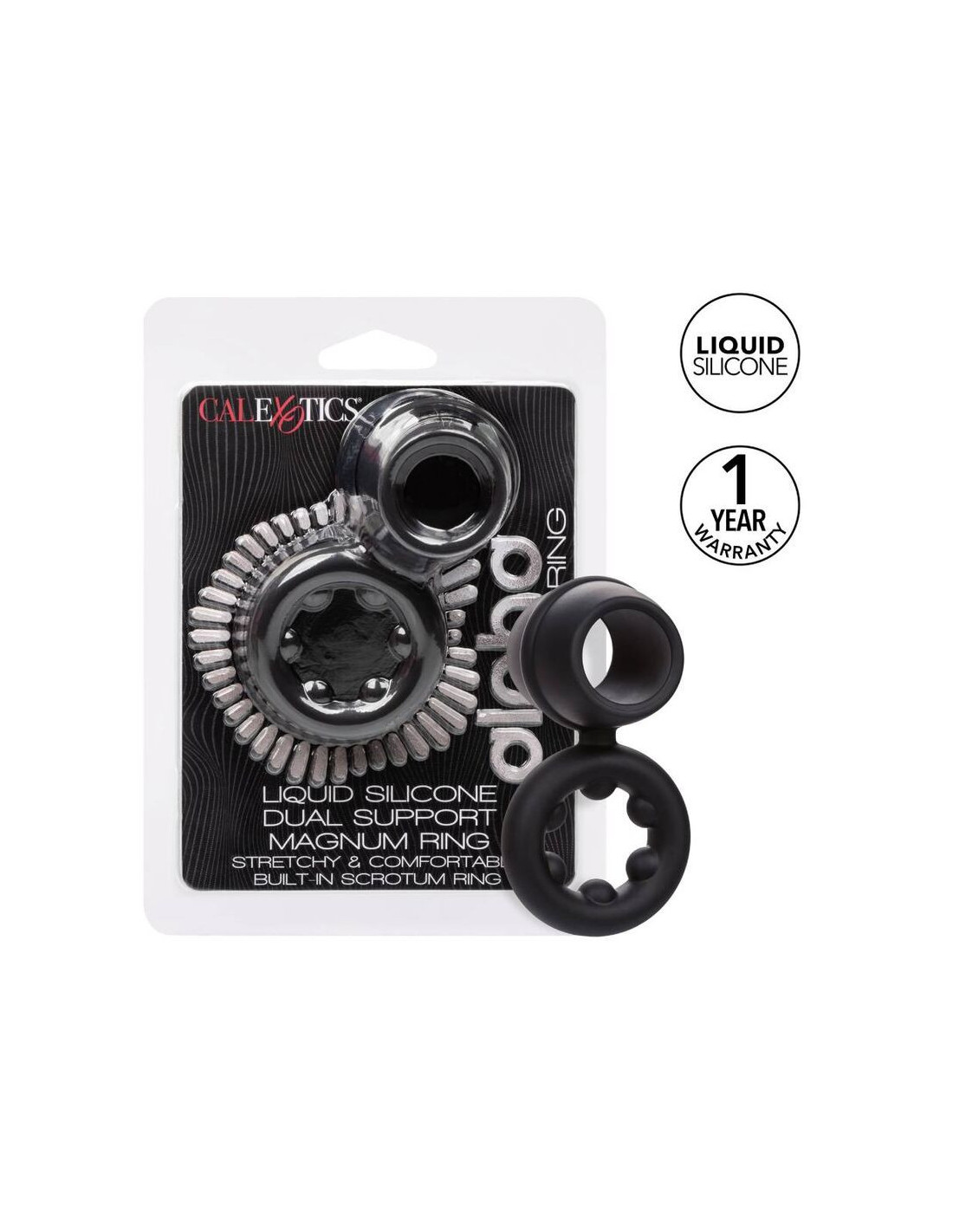 From bashful beginners to erotic experts, the Alpha Liquid Silicone Dual Magnum Ring will wrap you up tight in pleasure with the ultra plush, ultra stretchy enhancer ring. The playful ring is made from an ultra-stretchy liquid silicone with a daring dual ring design. This stretchy, comfortable cock ring is made to increase stamina, improve sensitivity and deliver superior erection support. The durable scrotum support ring lets you indulge even further into increased stamina. Look for an explosive pleasure experience while the plush ring squeezes with every movement. The premium liquid silicone is soft, smooth, durable and waterproof.