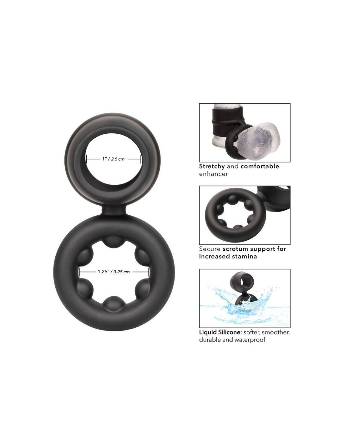 - Premium liquid Silicone enhancer with built-in scrotum ring